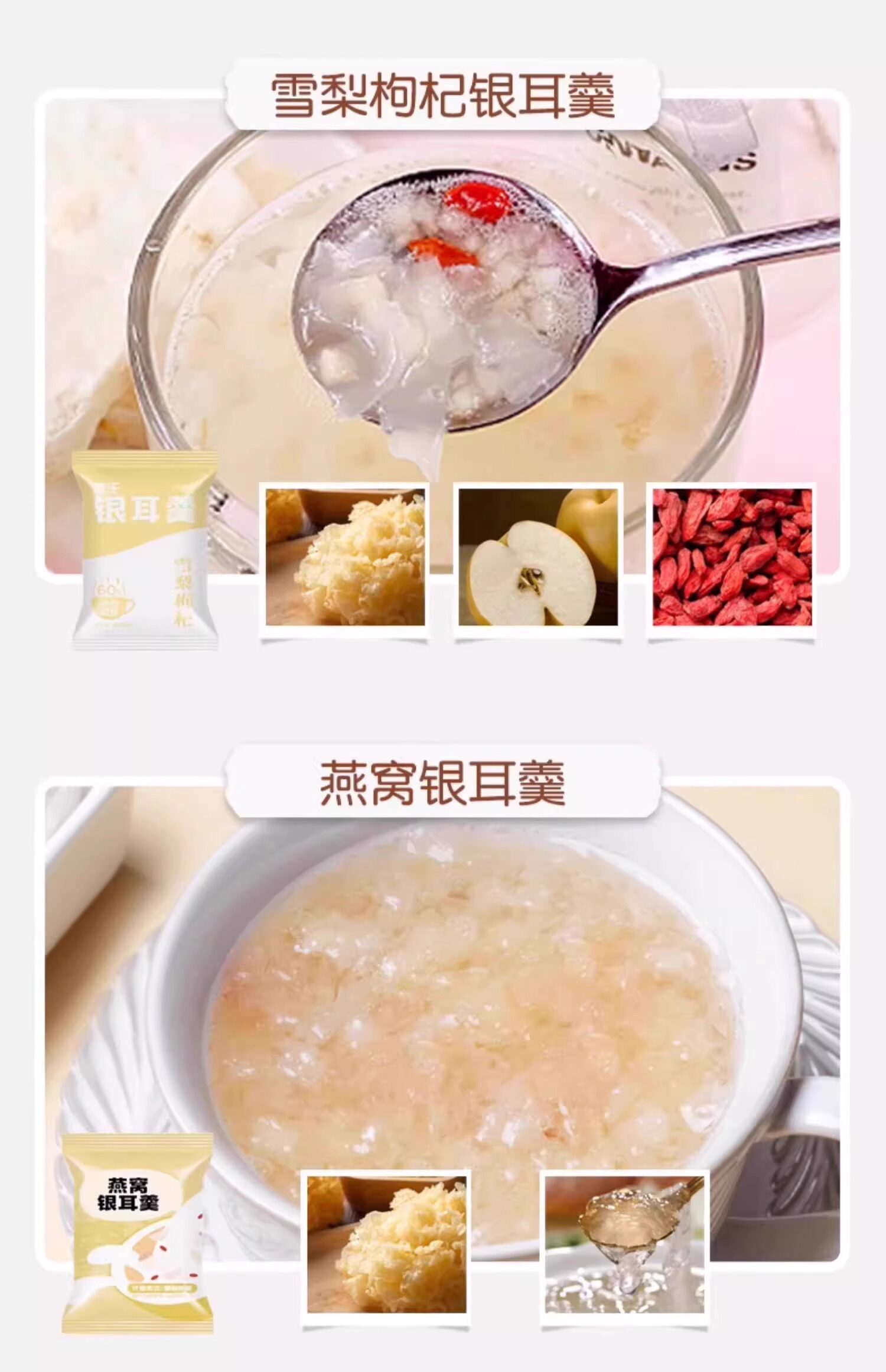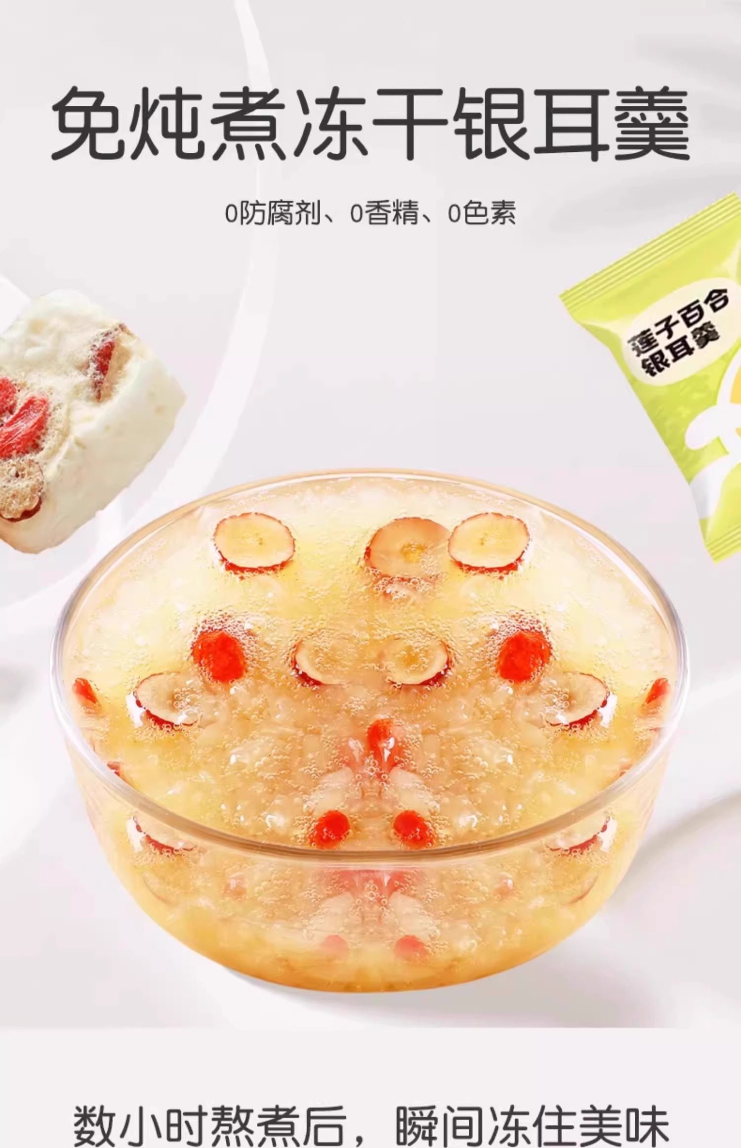 Суп с лиофилизированным супом тремеллы сразу же завален без кипящего птичьего гнезда, красных физ, волков, груши, семян лотоса, замены мгновенной еды, свежего тушеных и упакованных