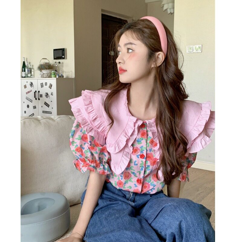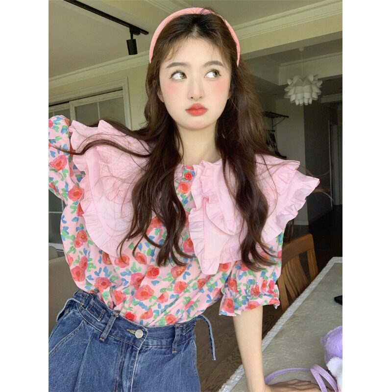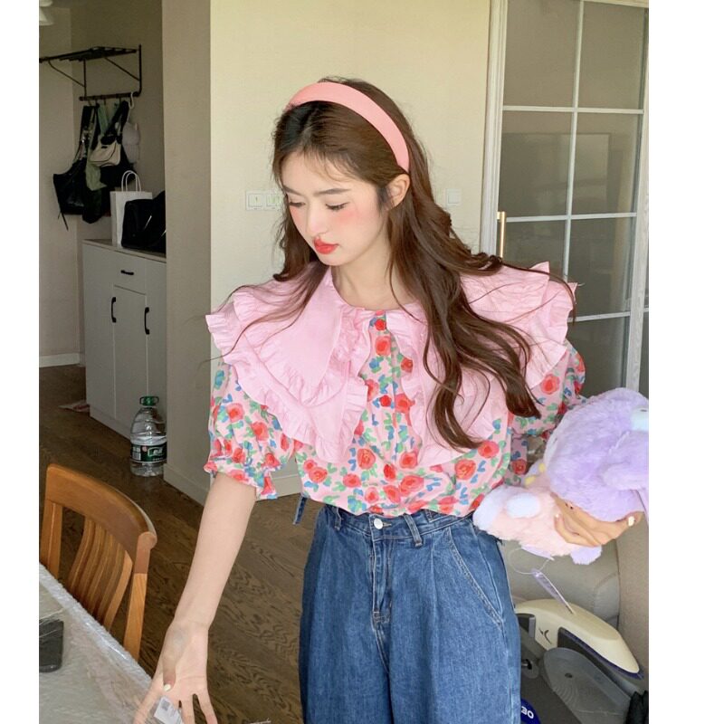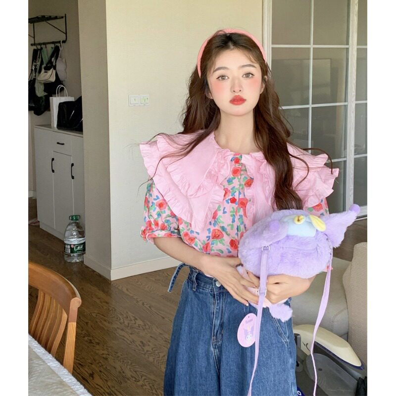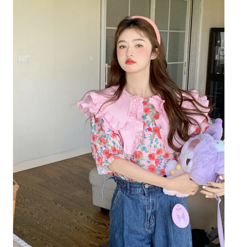 Кукла, летняя рубашка, кукольный воротник, цветочный принт, большой размер, изысканный стиль