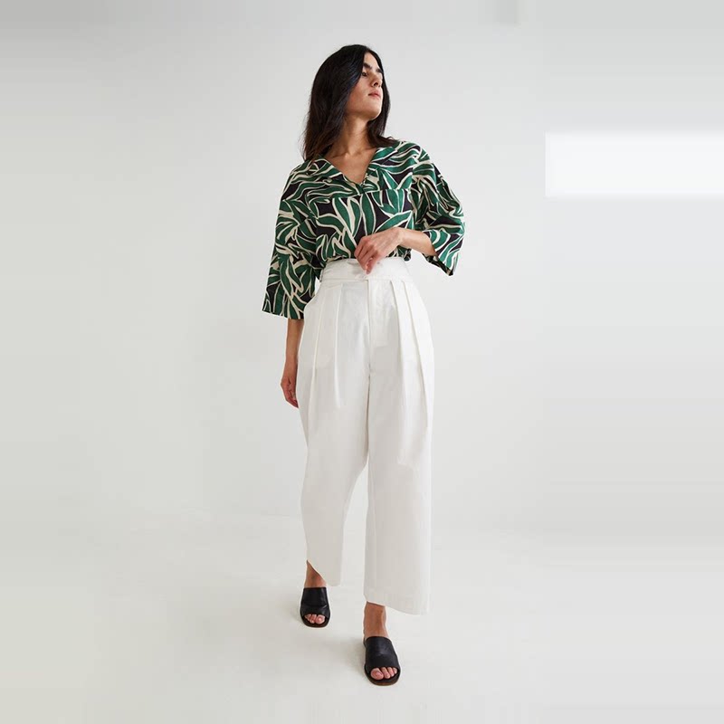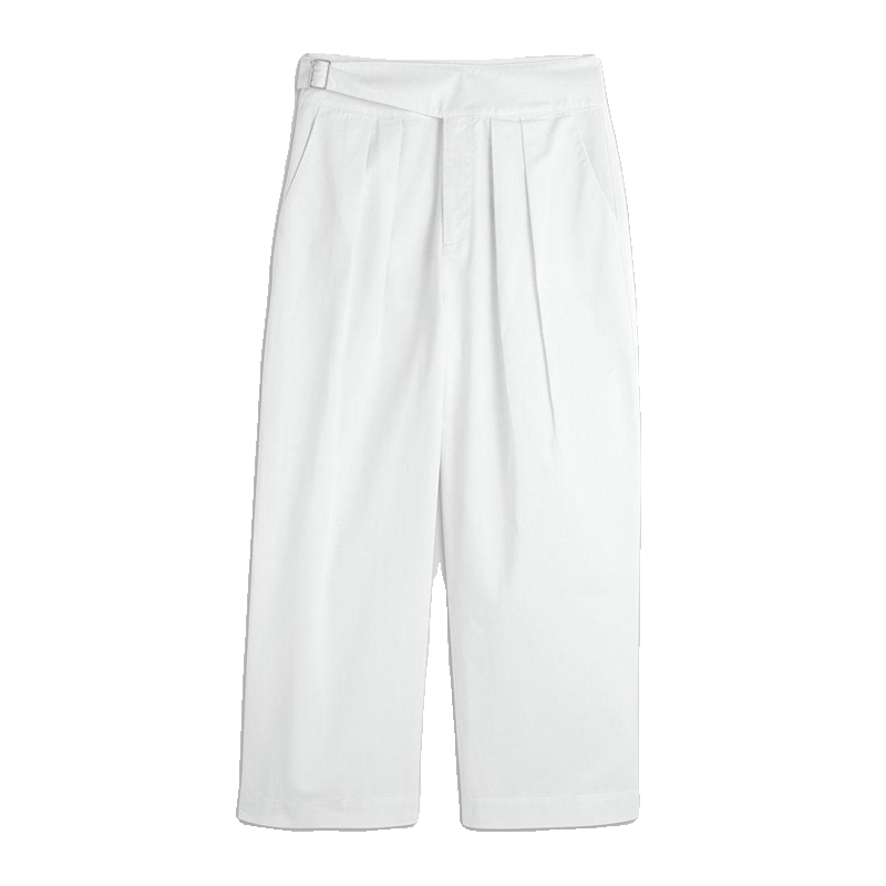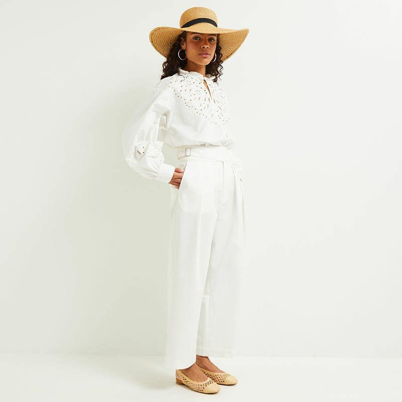 Хлопковые белые штаны, повседневные брюки для отдыха, французский стиль, в стиле кэжуал, яркий броский стиль, высокая талия