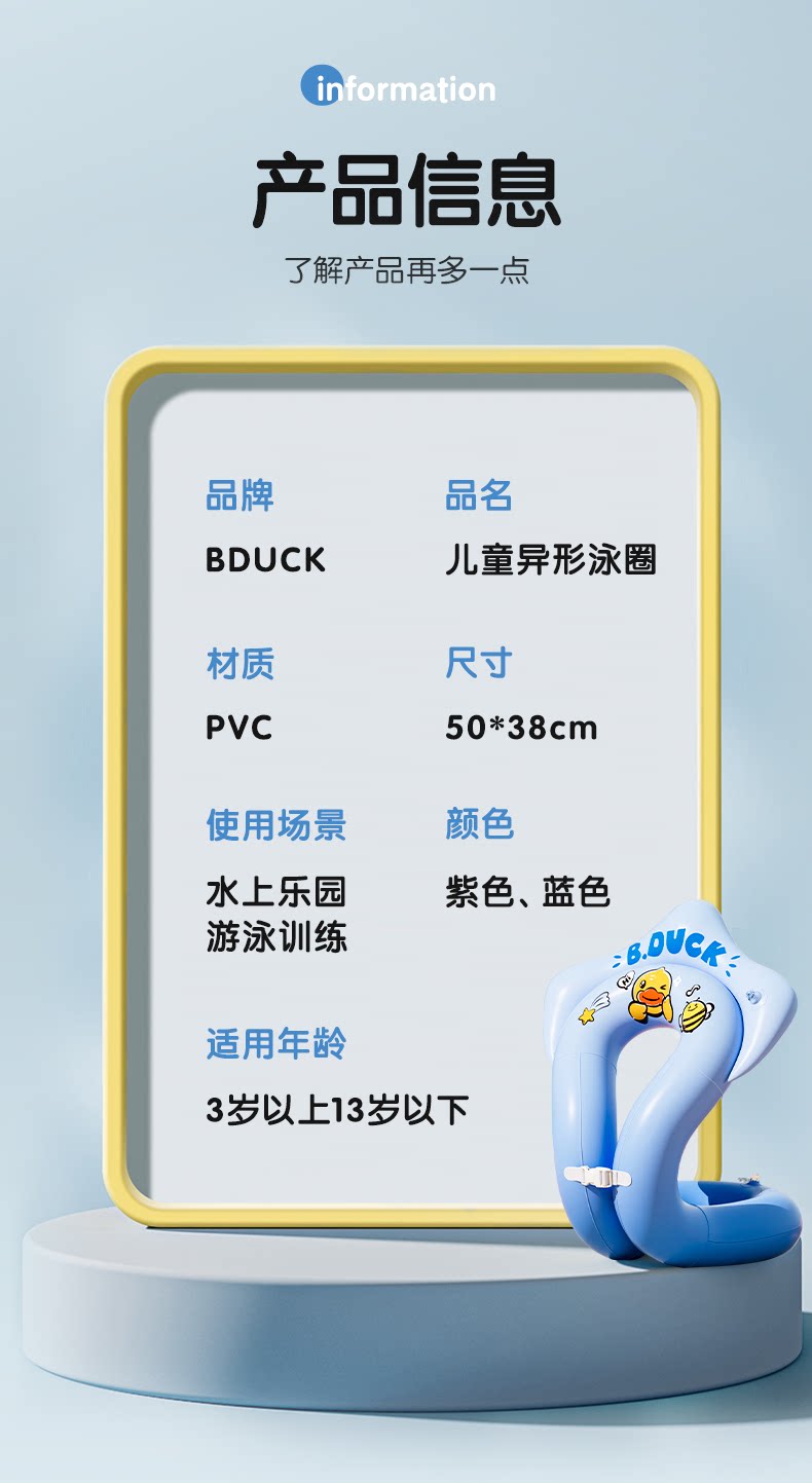 B.Duck, вспомогательный плавательный круг подходит для мужчин и женщин для плавания, увеличенная толщина