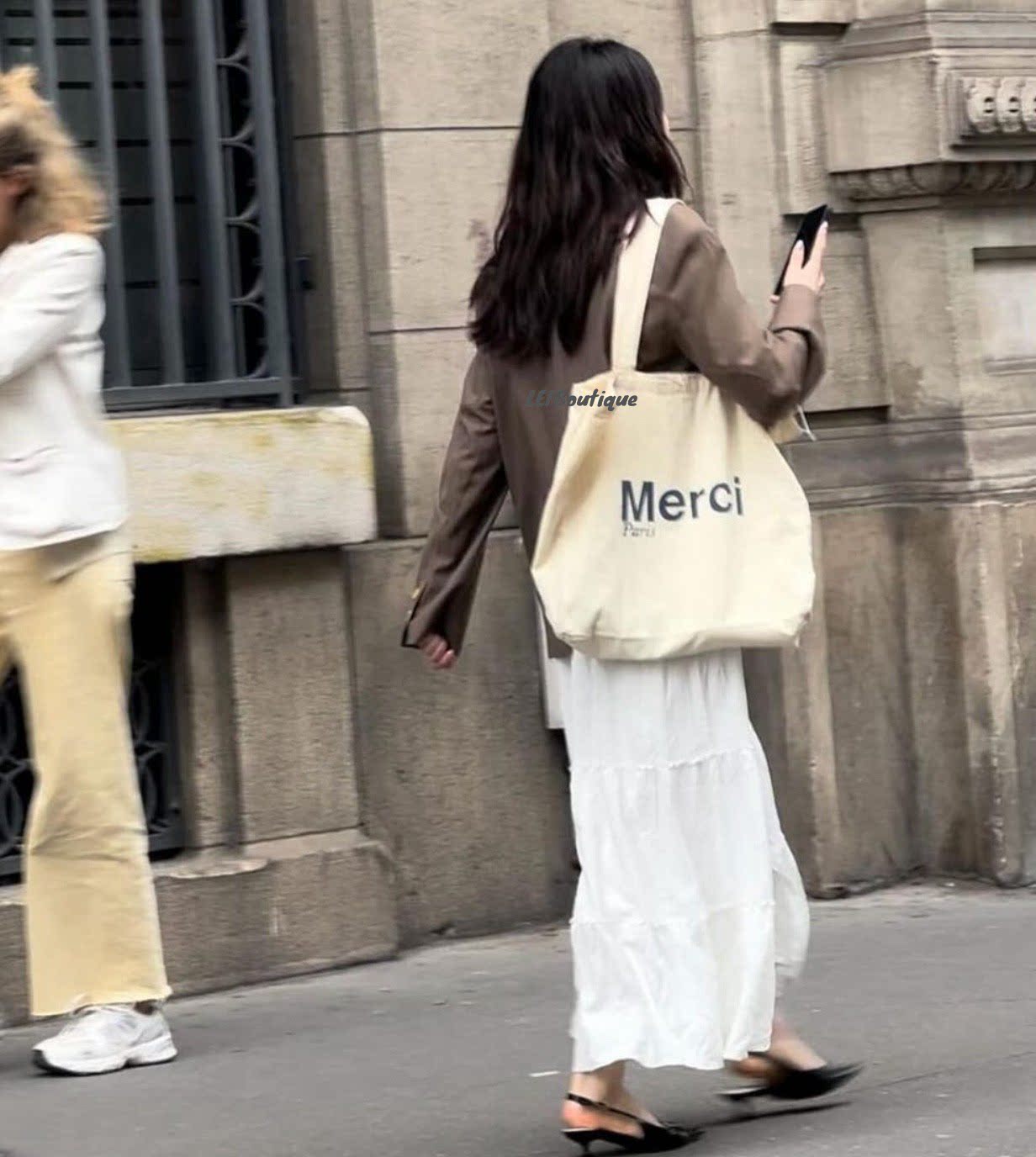 Покупатель Lef More Merci Paris французский ретро -защита окружающей среды Простая дикая сумка для покупок дикой холст