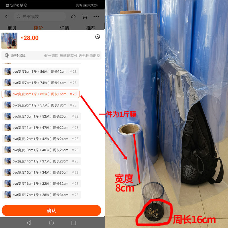 Небольшая пленка из ПВХ с бочкой из ПВХ свободно разрезание термического сжатия