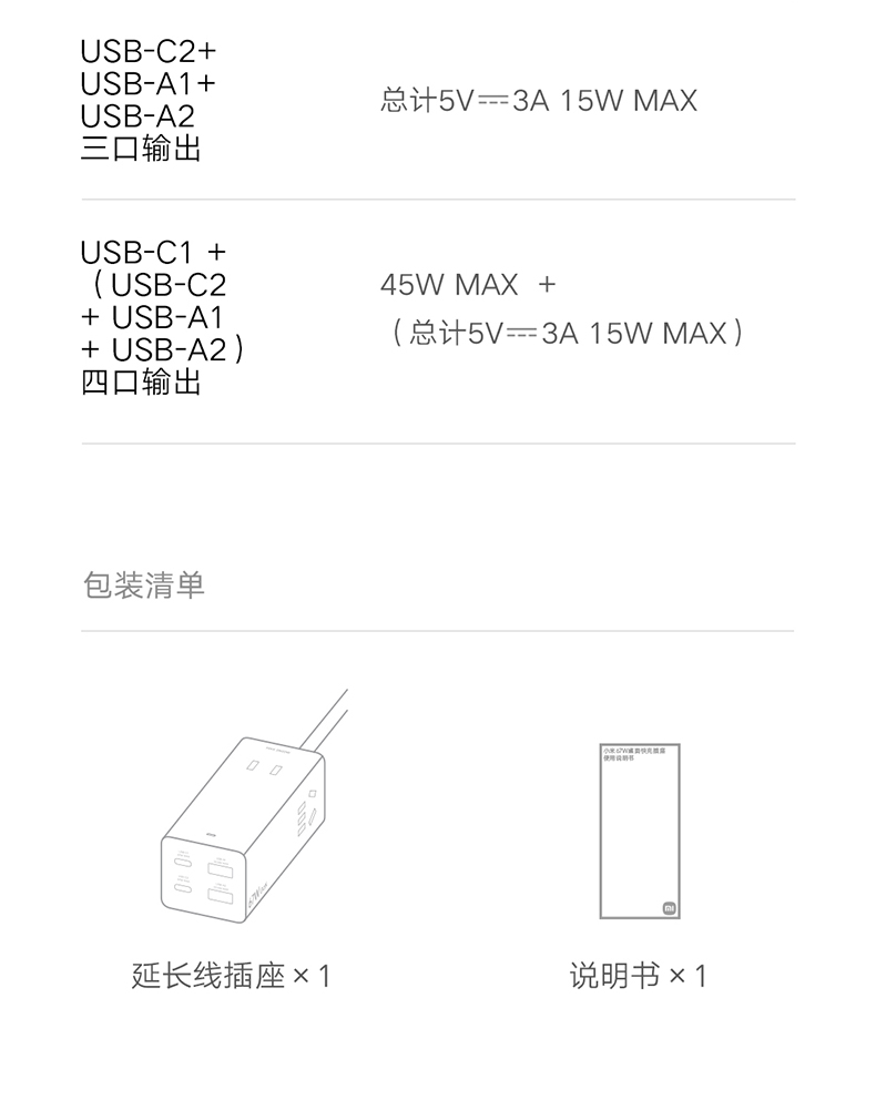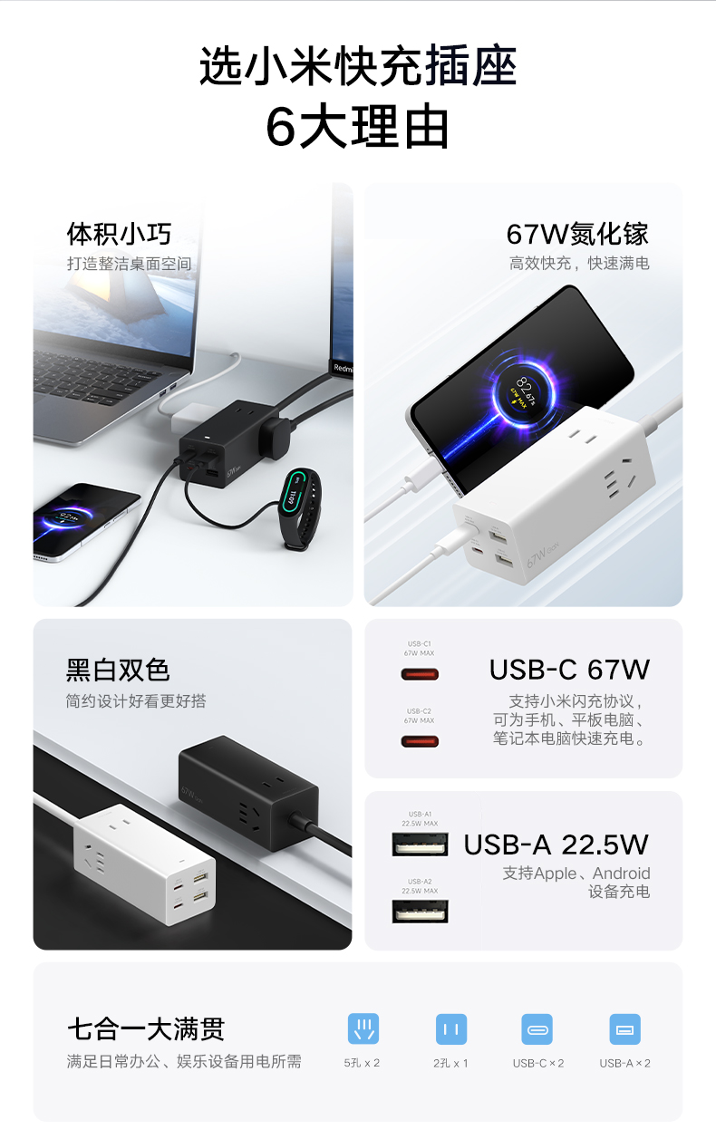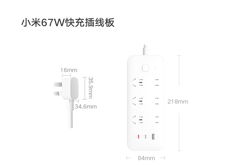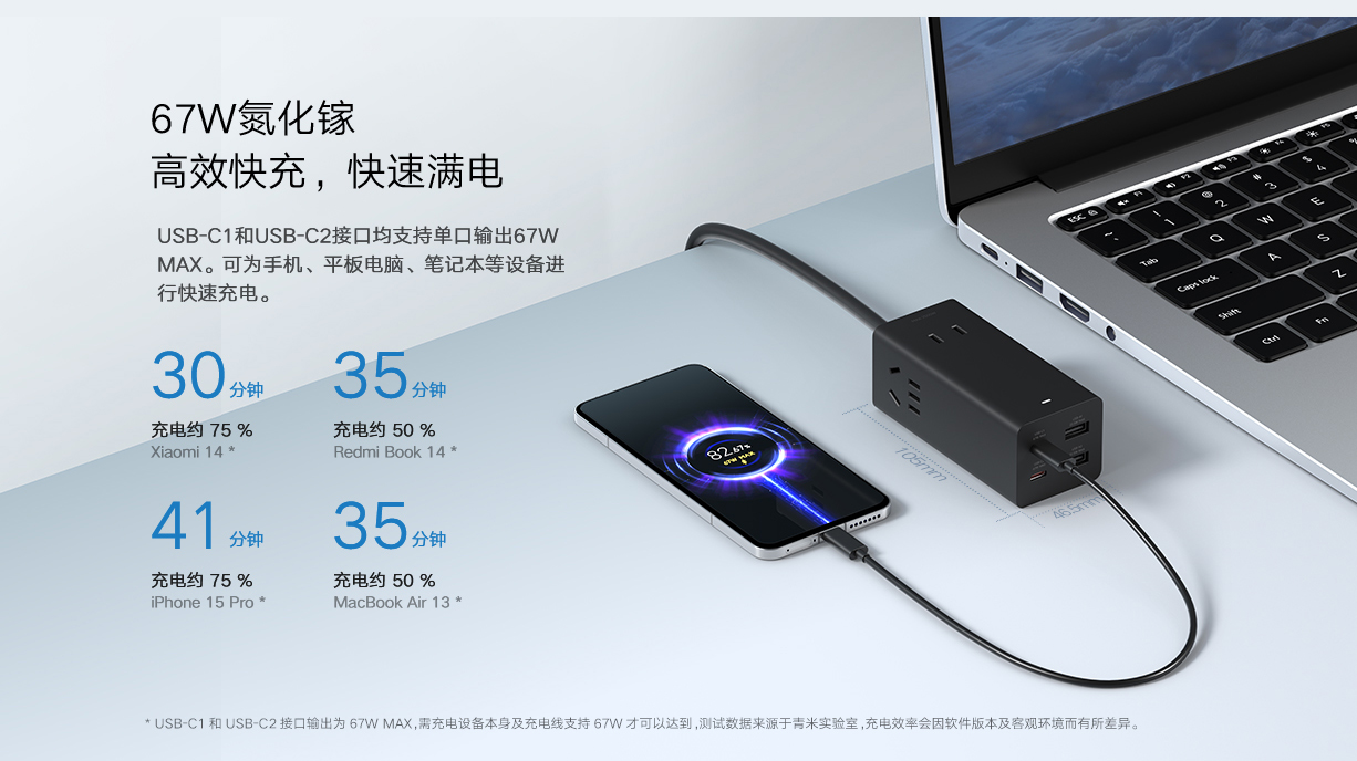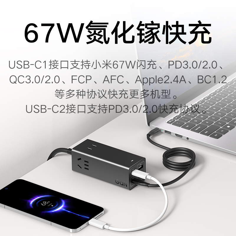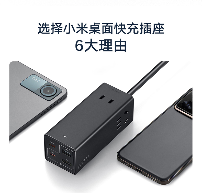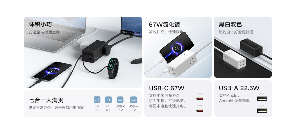 Xiaomi Kuai Plug -In панель USB Socket 67W Настольный азот азот.