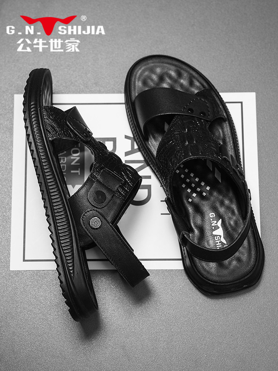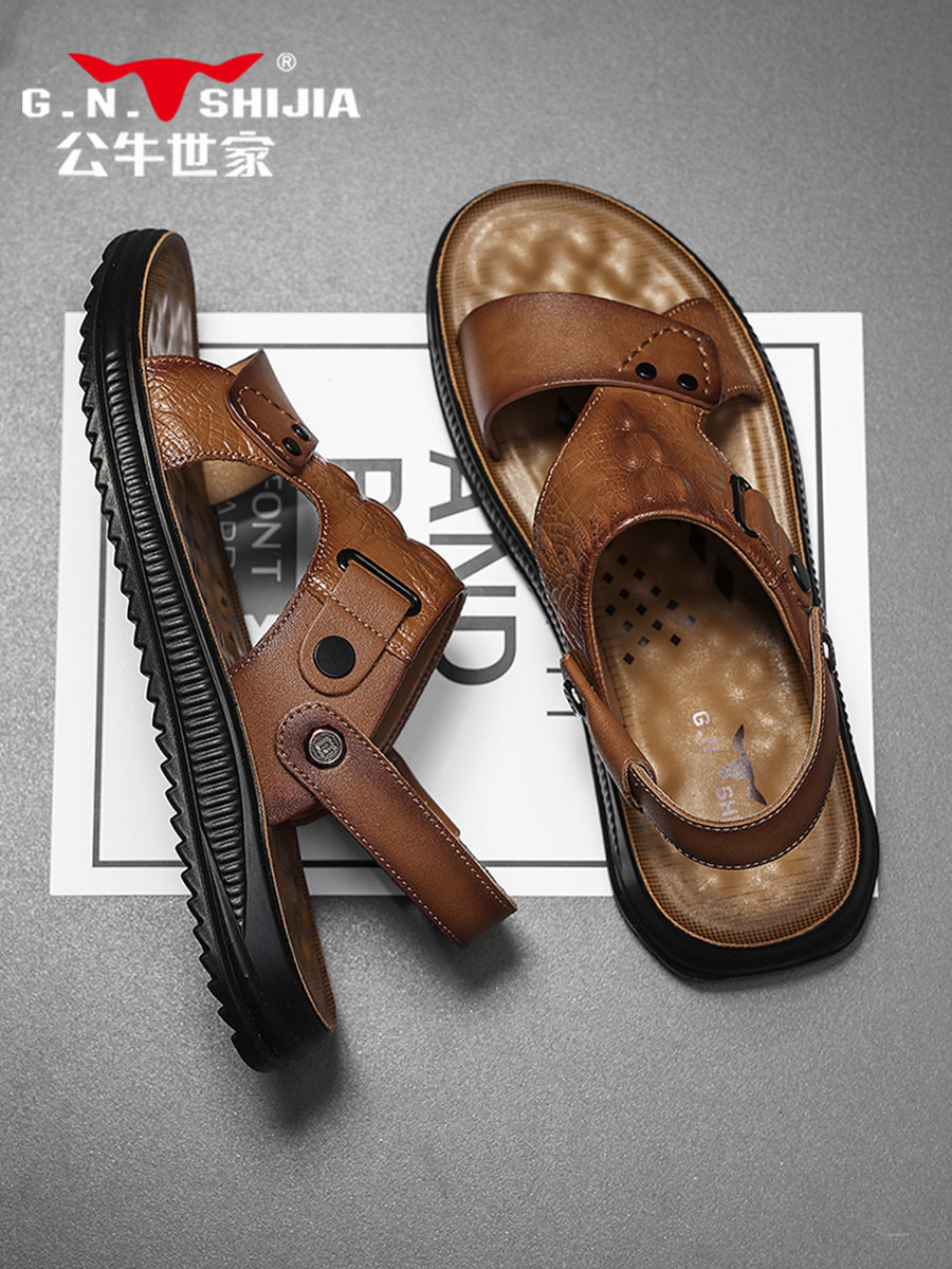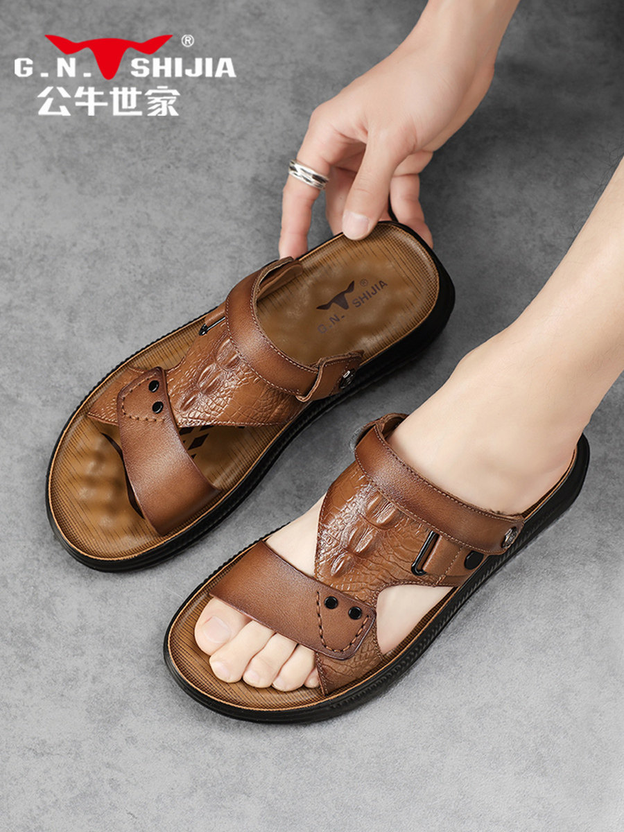 Летние дышащие кожаные сандалии, нескользящие дезодорированные слайдеры, из натуральной кожи, воловья кожа