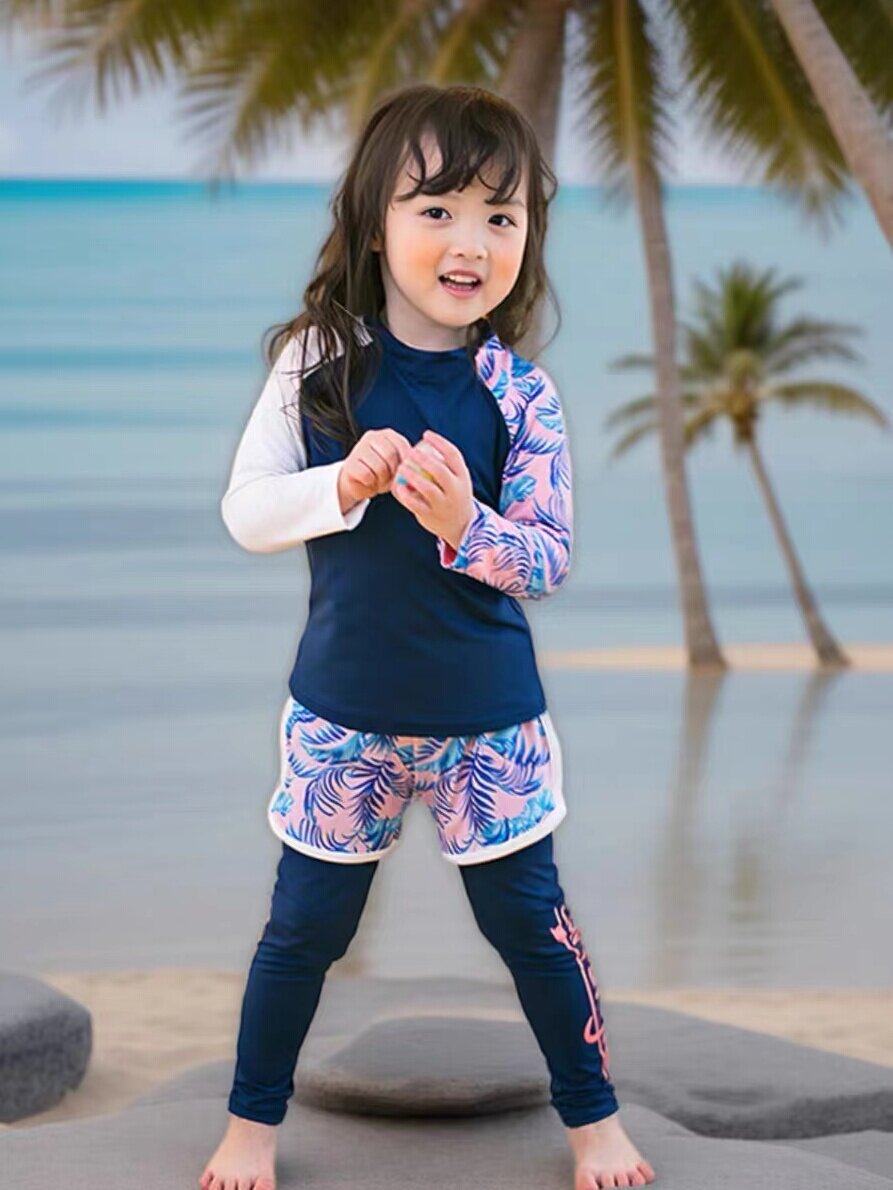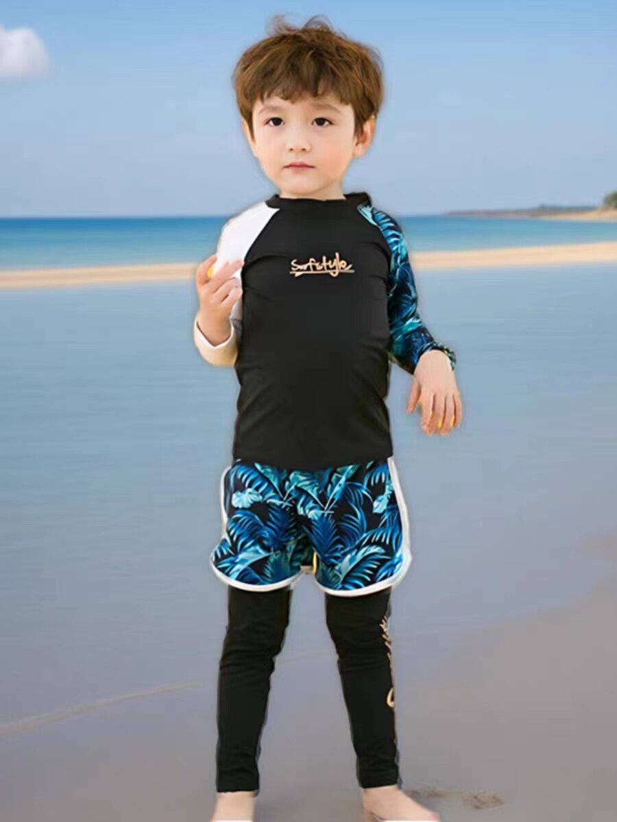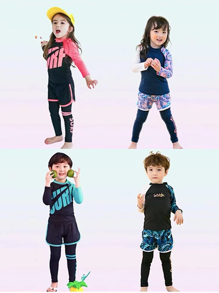 Детский купальник для мальчиков, лонгслив, раздельные штаны, удерживающий тепло комплект для девочек, защита от солнца, 3 предмета, подходит для подростков
