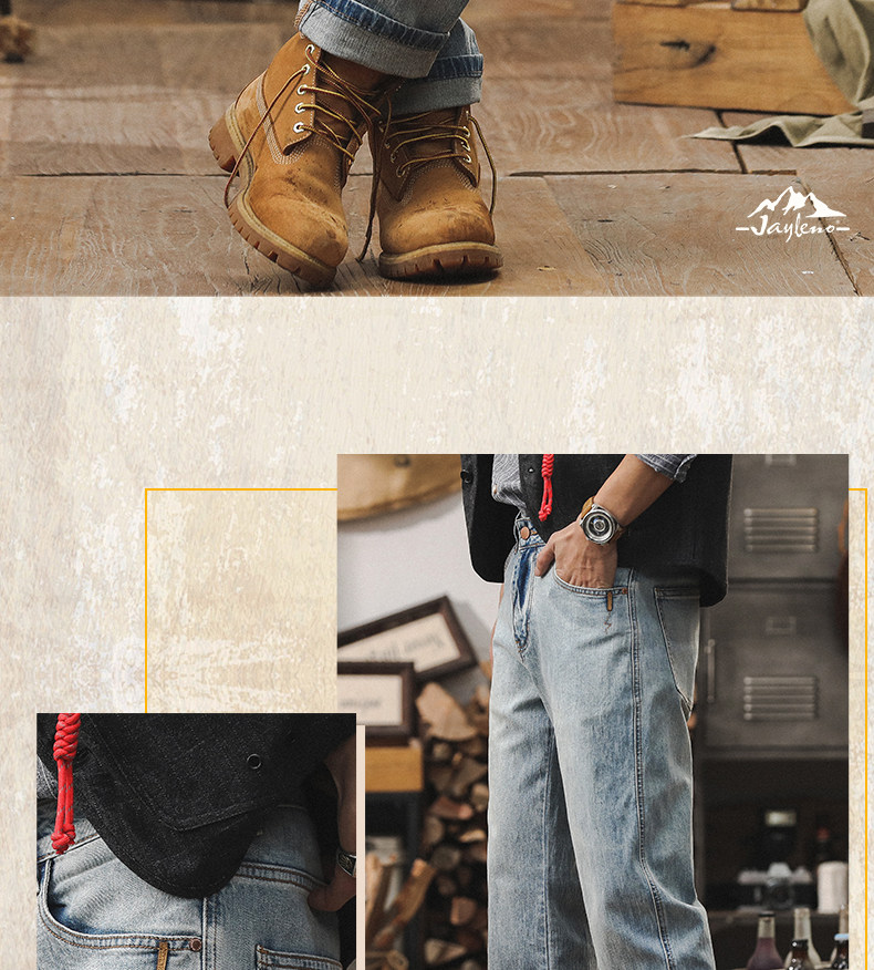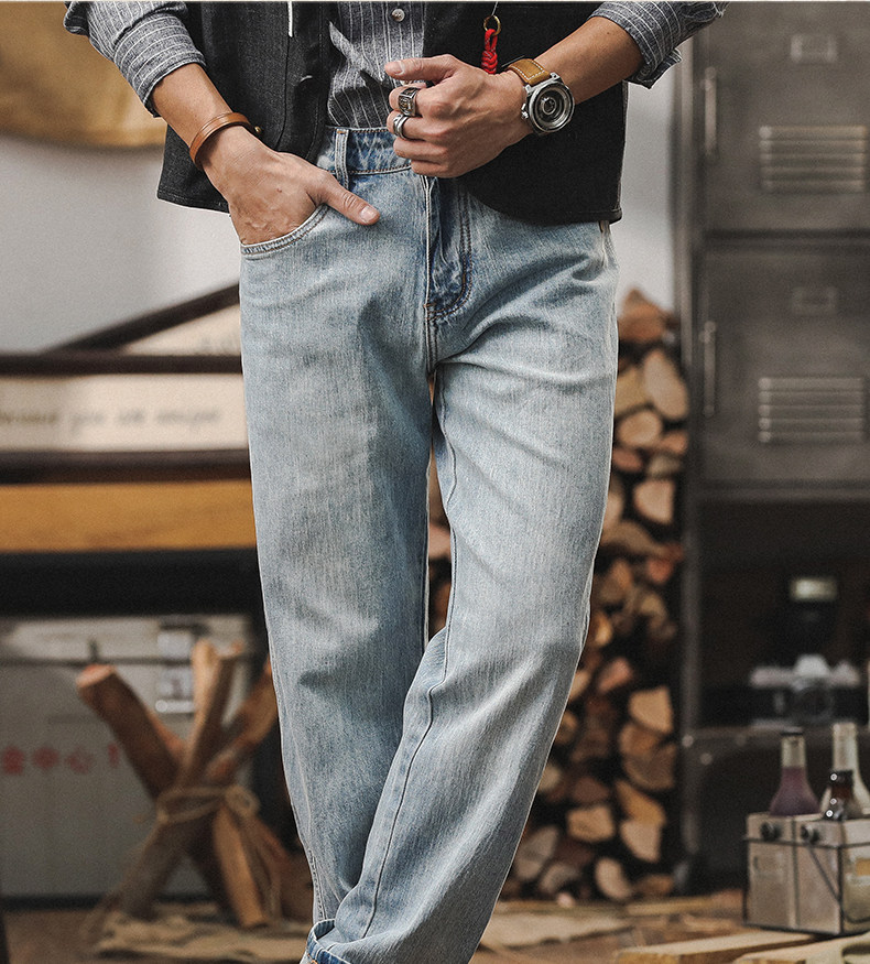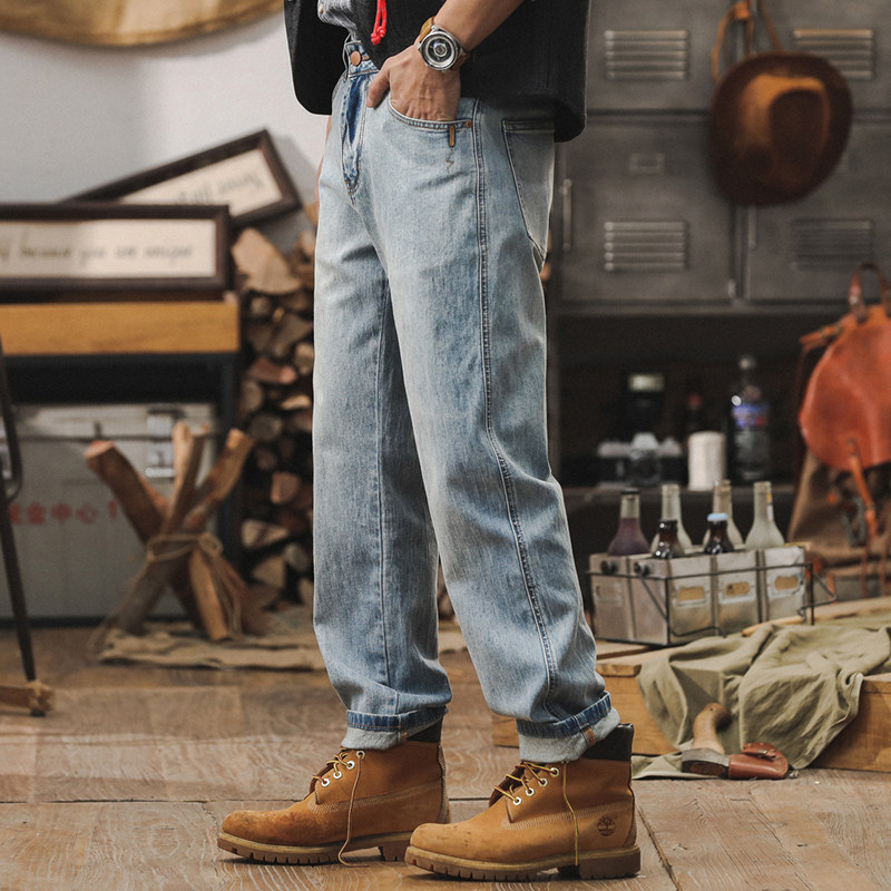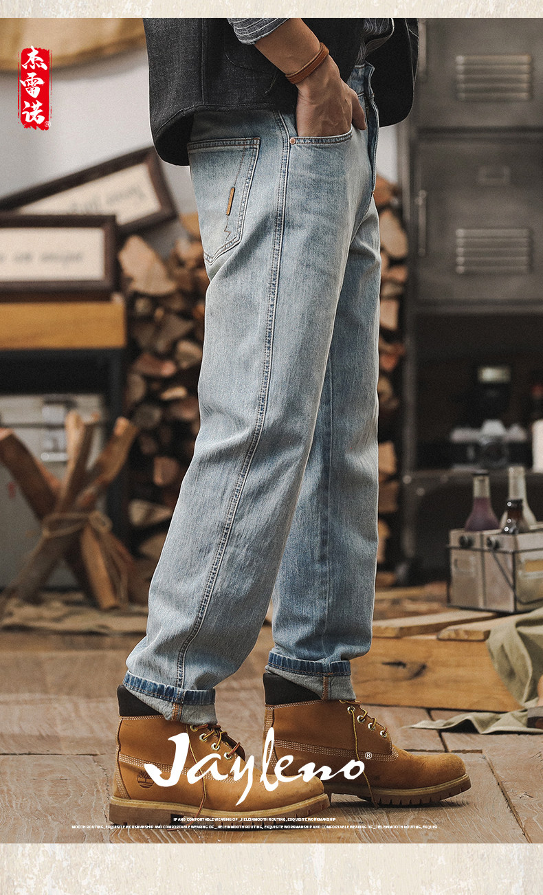 杰雷诺 Светлые осенние джинсы, весенние штаны для отдыха, свободный прямой крой