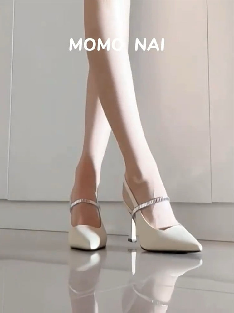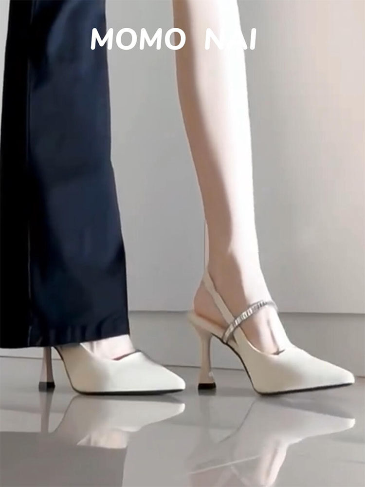Французские белые сандалии на носке Рейн для женщин Лето 2025 г. Новые каблуки.
