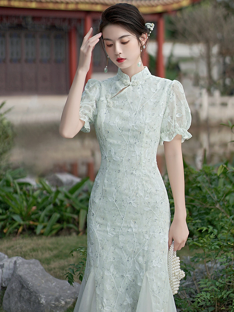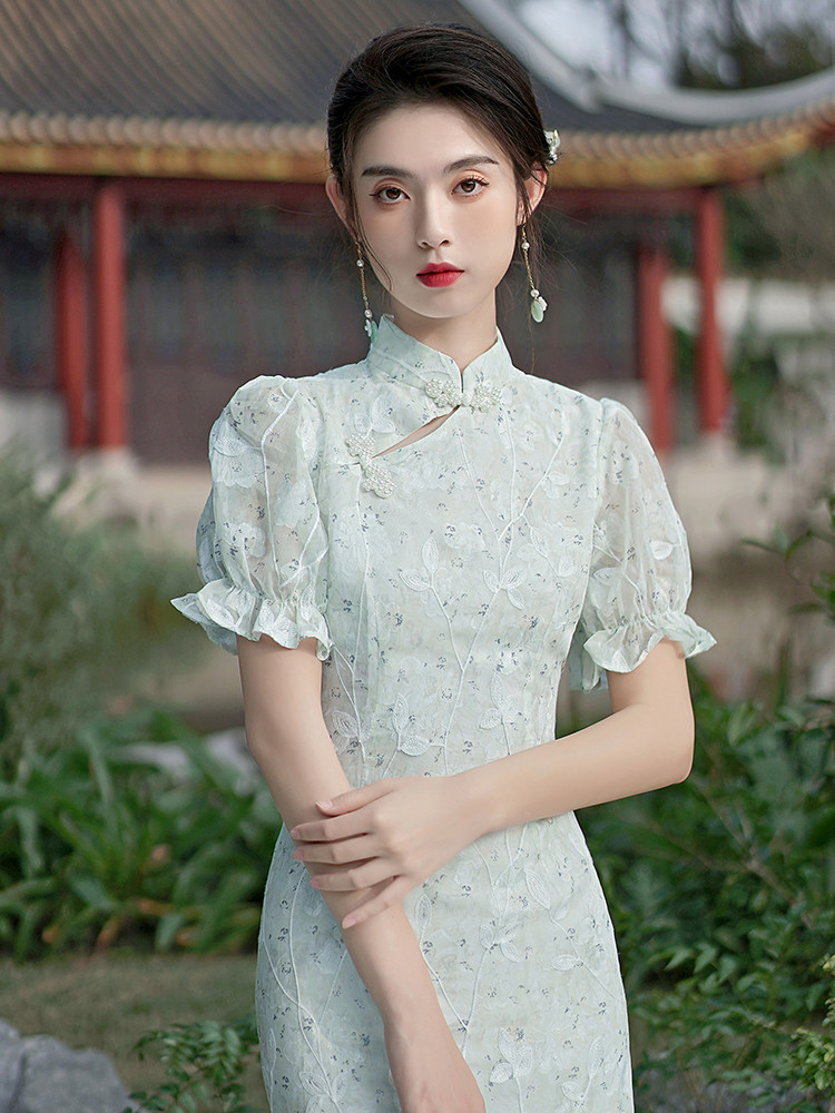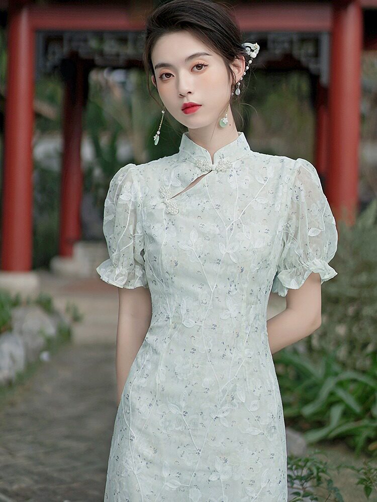 Ретро летнее ципао, корсет, платье, китайский стиль, подходит для подростков, в цветочек