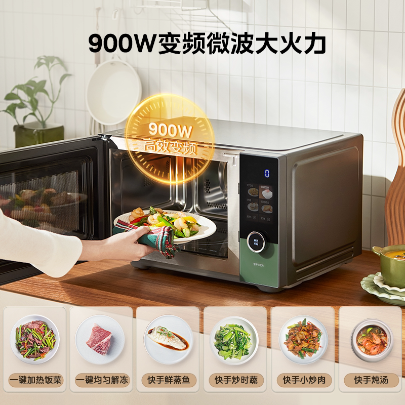Микроволновая жареная жареная жареная четырехнологичная инвертор микроволновой печи, плоская пластинка из нержавеющей стали.