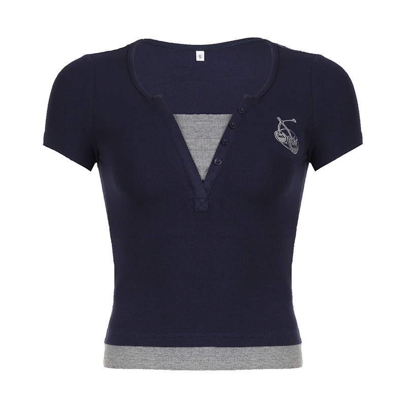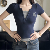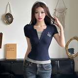 Ретро милый приталенный комплект, универсальная футболка, в американском стиле, короткий рукав