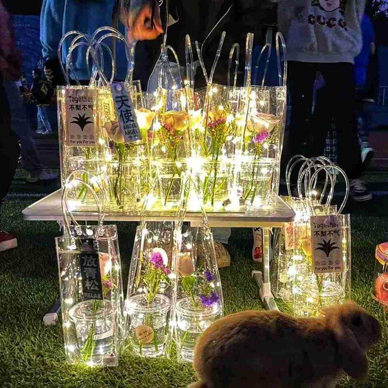 Свалл с цветочной сумкой цветочный чашка рука -горит подарочный пакет для кампуса праздничный подарок прозрачный пластиковый бамбуковый молочный чайный пакет