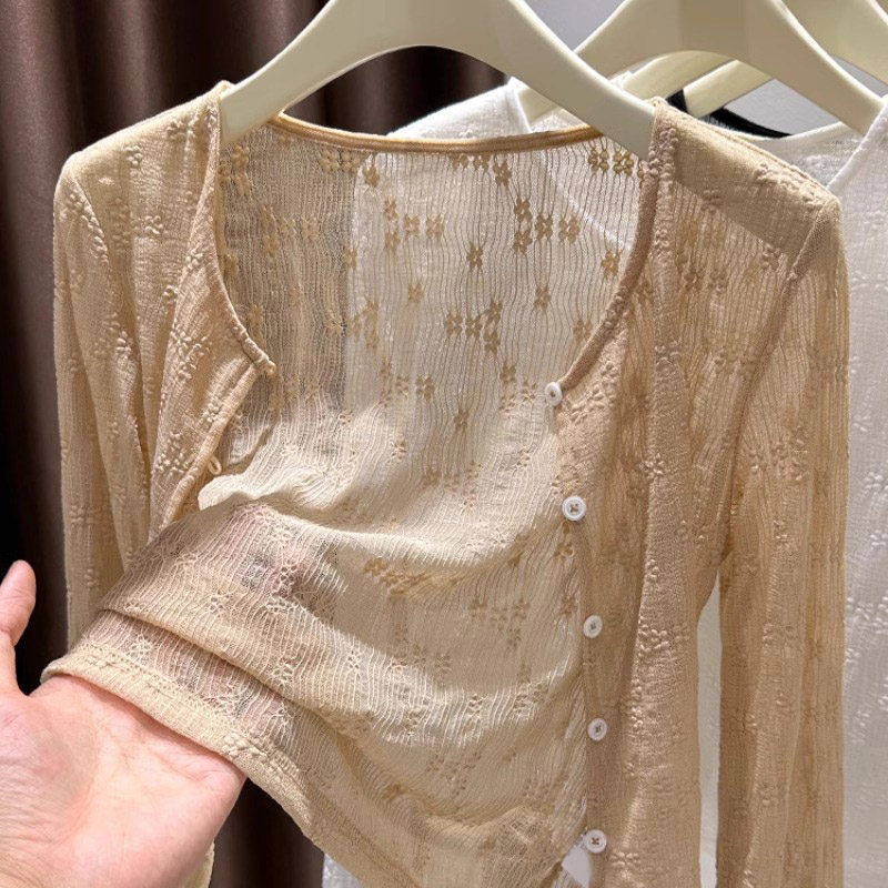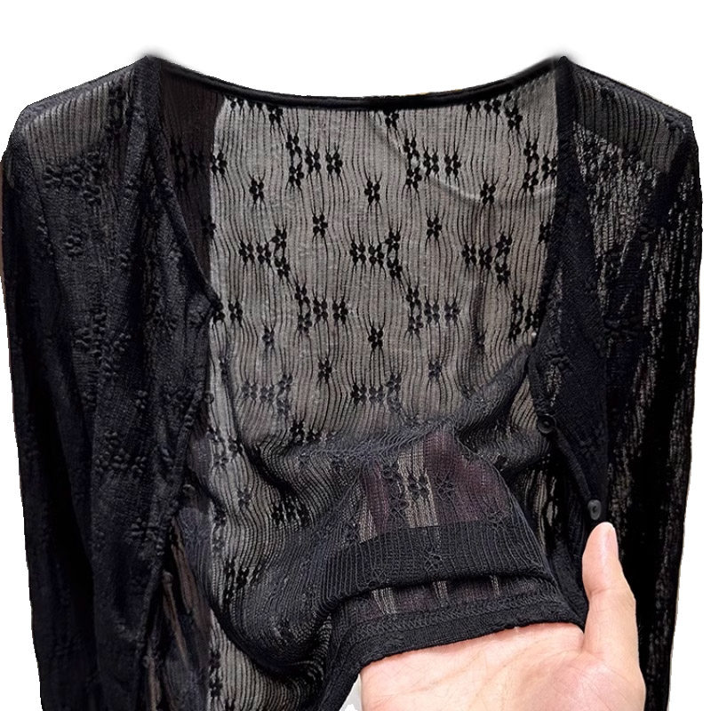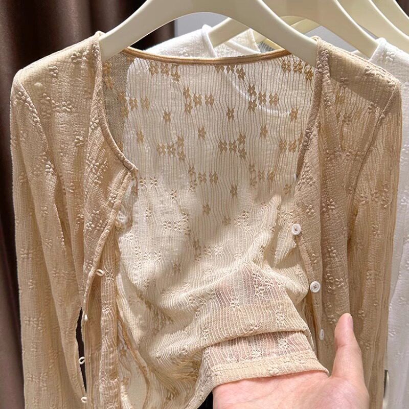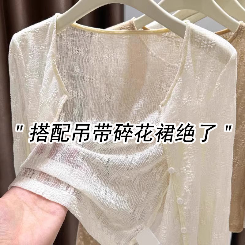 Кружевная одежда для защиты от солнца, летний кардиган, короткое шифоновое платье, эффект подтяжки, в цветочек