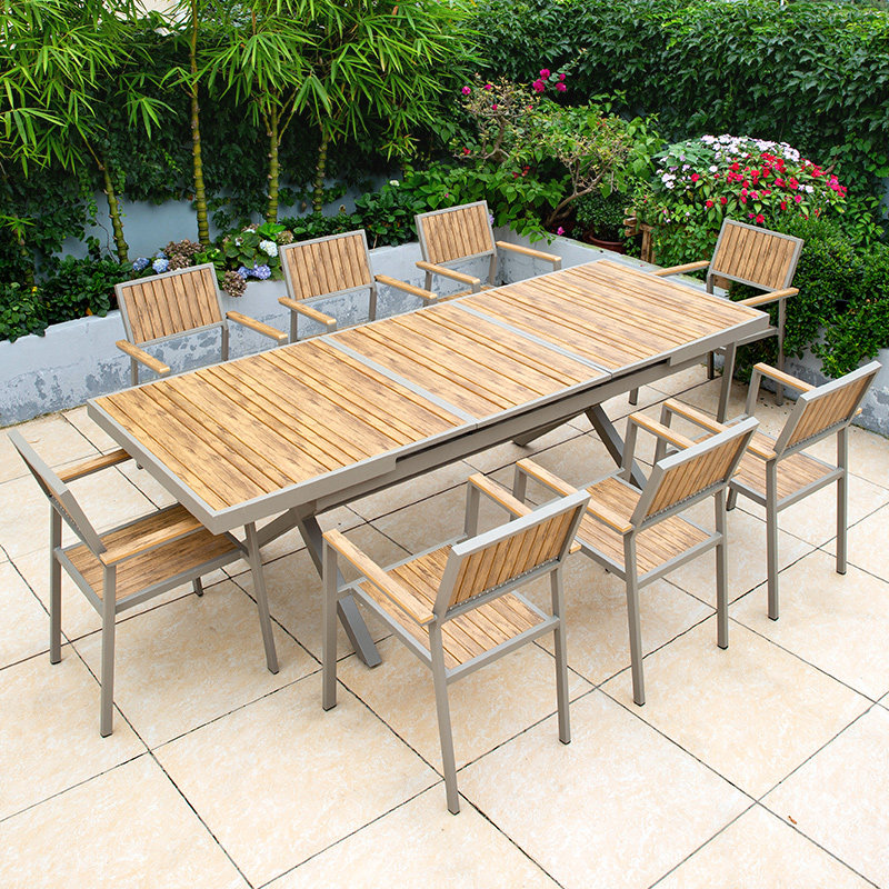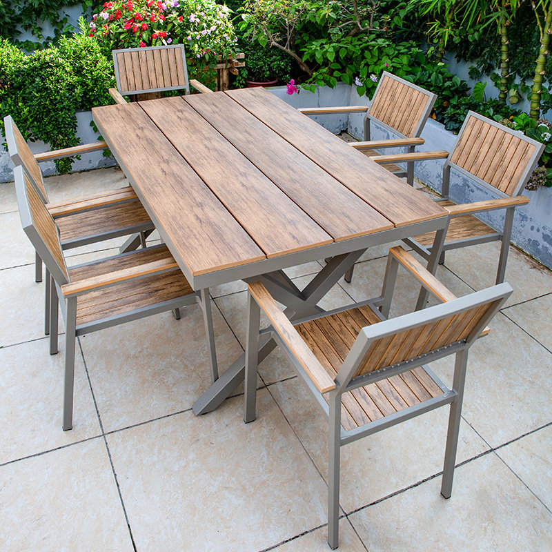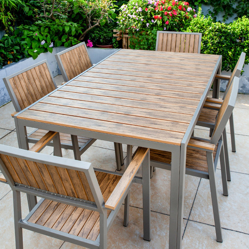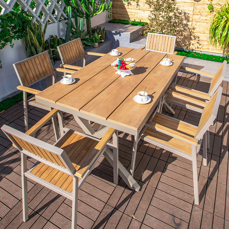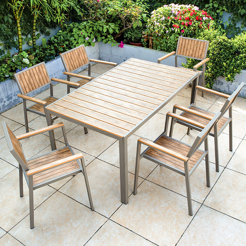 Уличные столы и стулья, сад во внутреннем дворе, антикоррозийная деревянная комбинация, открытый балкон, водонепроницаемые деревянные столы и стулья из алюминиевого сплава для отдыха на открытом воздухе.