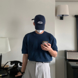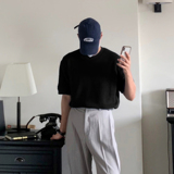 Трикотажная летняя базовая дышащая футболка с коротким рукавом с круглым воротником, в корейском стиле