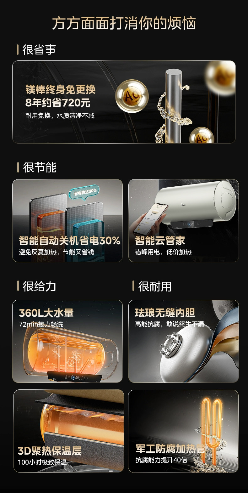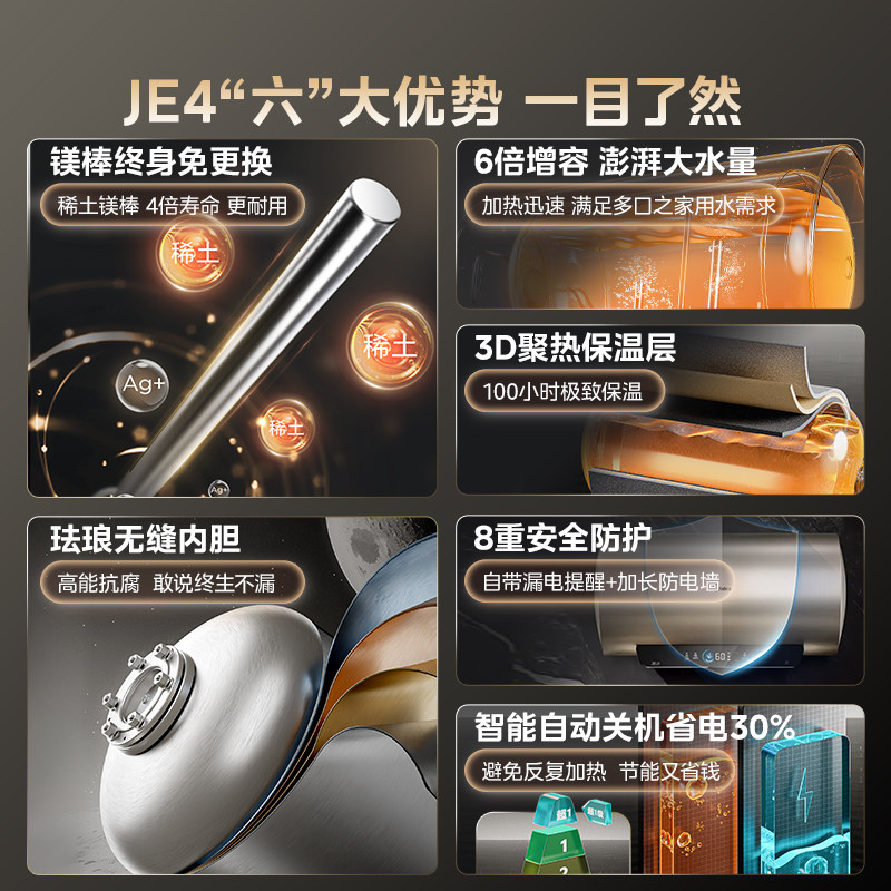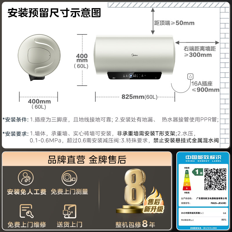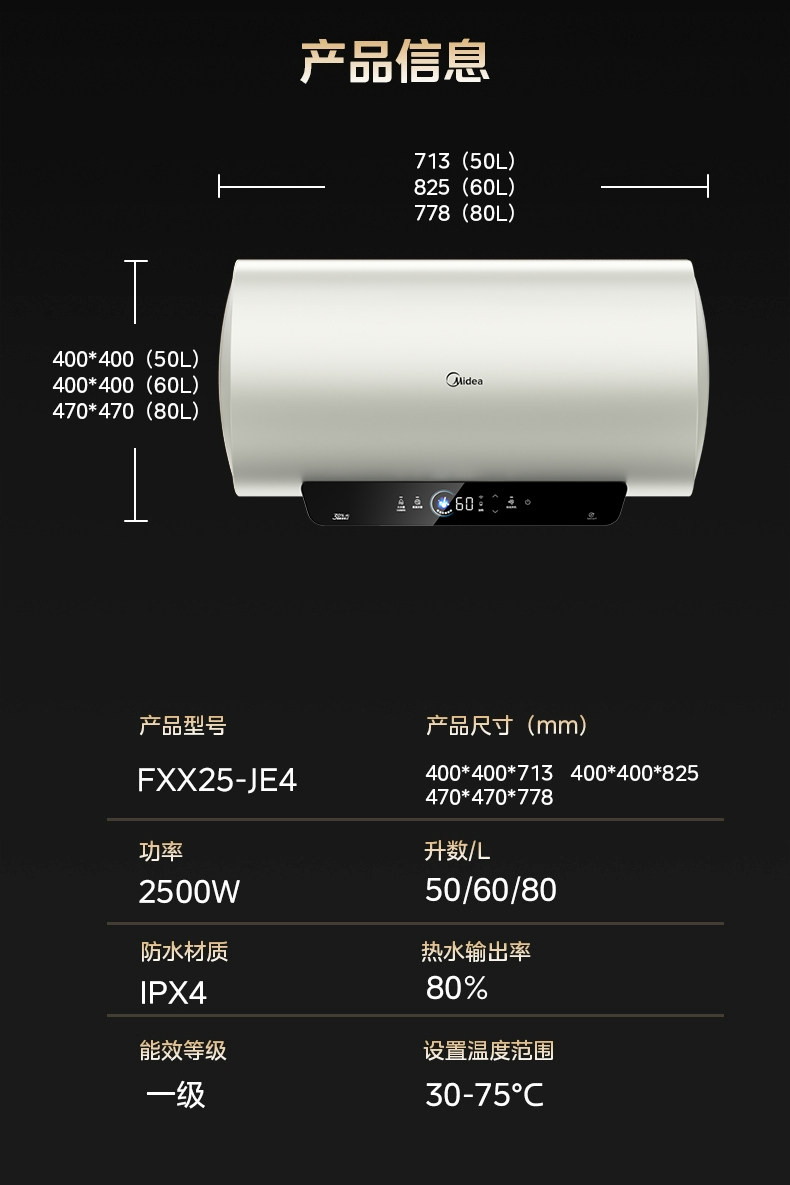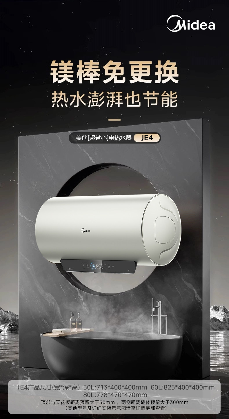 Электрический водонагреватель Midea для домашней ванны и туалетной комнаты, энергоэффективность первого уровня, 60 литров, 50 литров, официальный флагманский магниевый стержень JE4