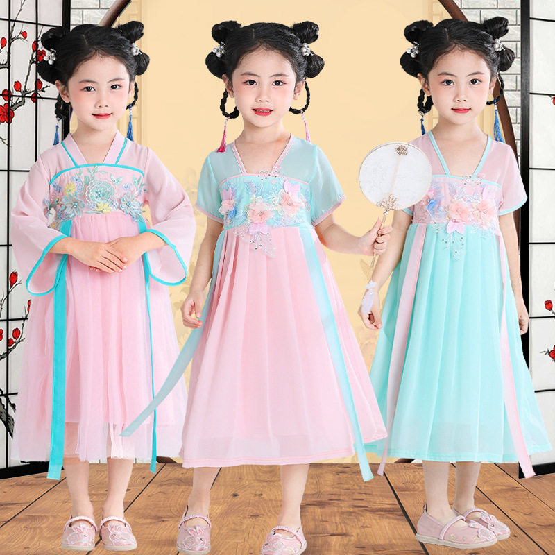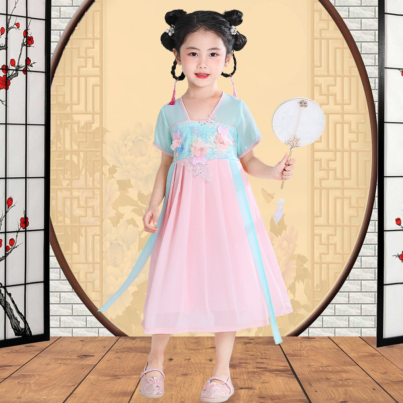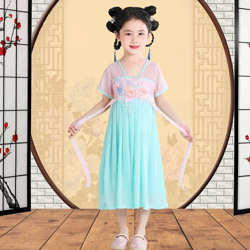Ханьфу, тонкая летняя одежда, дышащая длинная юбка, платье, китайский стиль, в западном стиле
