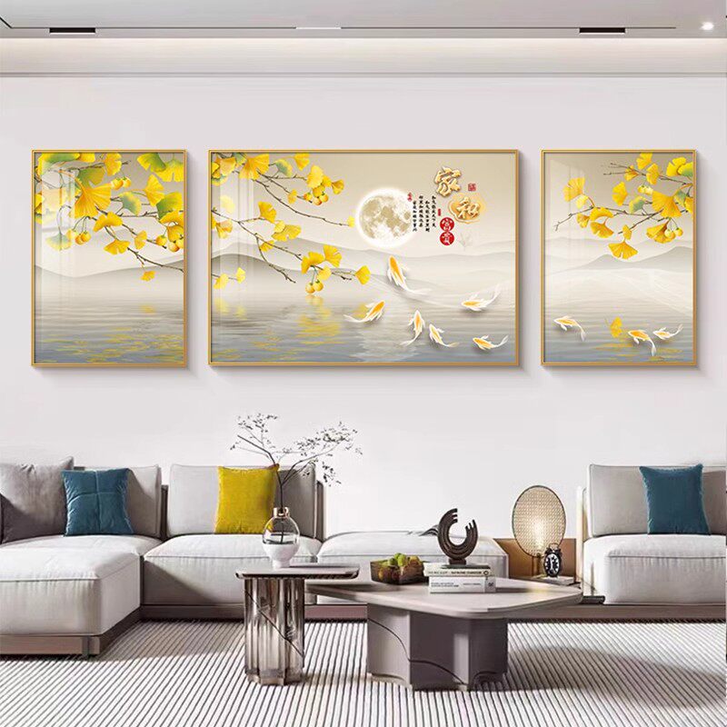 Современный минималистский декор для гостиной, картина Jiuyujia и новая китайская пейзажная живопись, триптих, фреска, диван, фон, настенная живопись