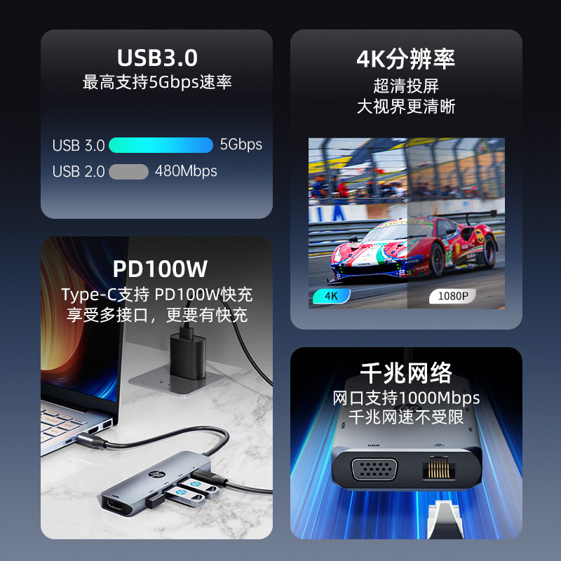 HP HP Расширение Docky Typec Expand HDMI сцены для преобразования USB -разделителя Hub Circle Многофункциональный интерфейс Многофункциональный поворотный терминал компьютер iPad планшет мобильный телефон мобильный телефон