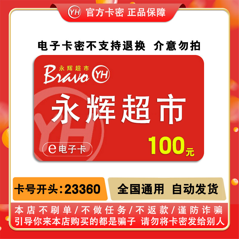 Электронная карта супермаркета Yonghui 100 юаней, секретная подарочная карта, купон на потребление Электронная карта Yonghui 100 юаней