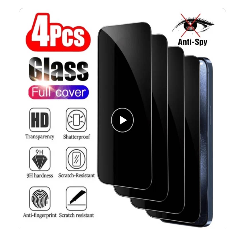 4pcs Полная крышка Конфиденциальность Подавленное стекло для iPhone 15 14 13 12 Pro Max Antipy Screen Sproators