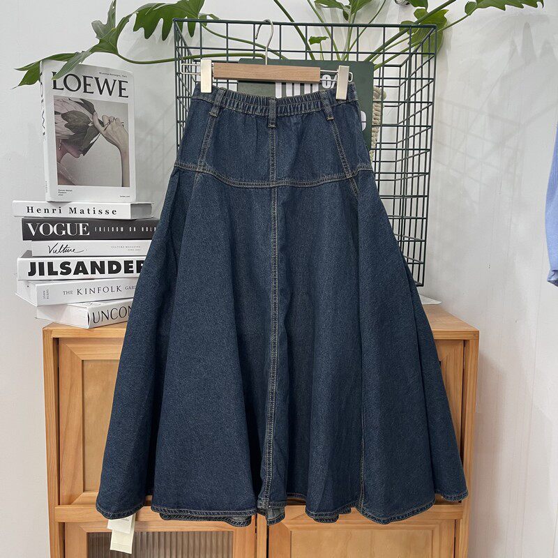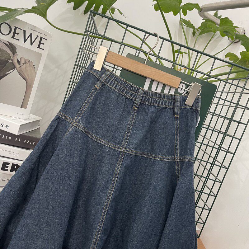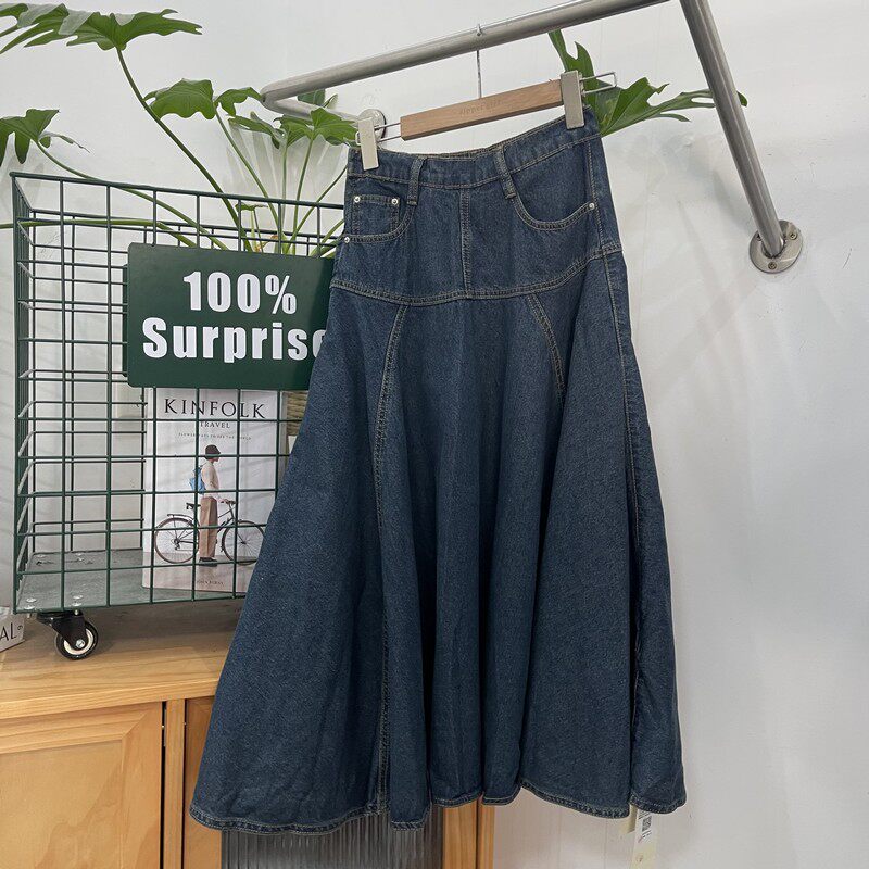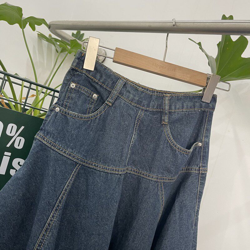 Высококачественная женская повседневная однотонная тонкая джинсовая юбка с промежностью и большой юбкой, бесплатная доставка