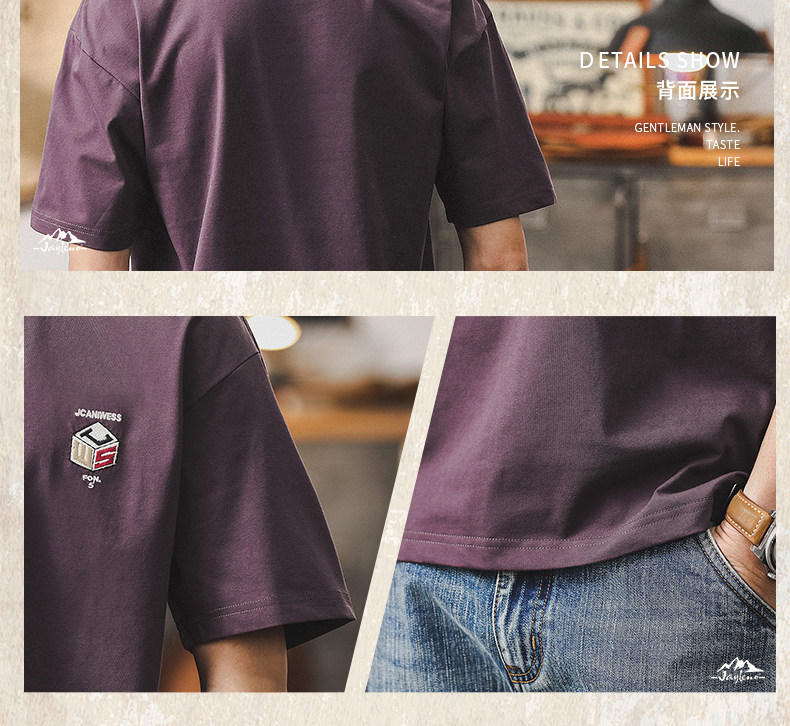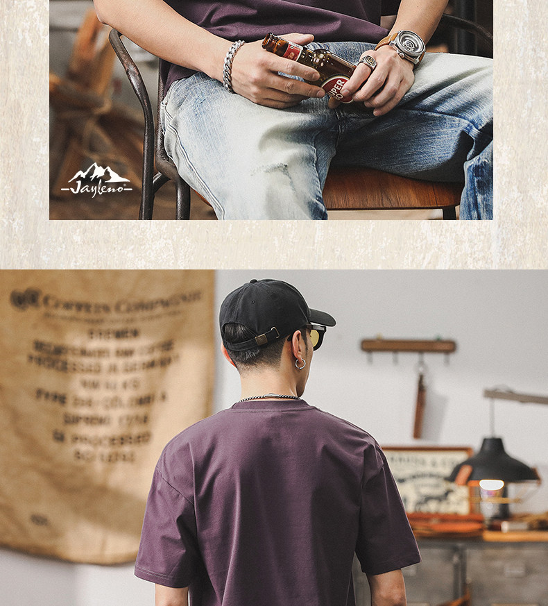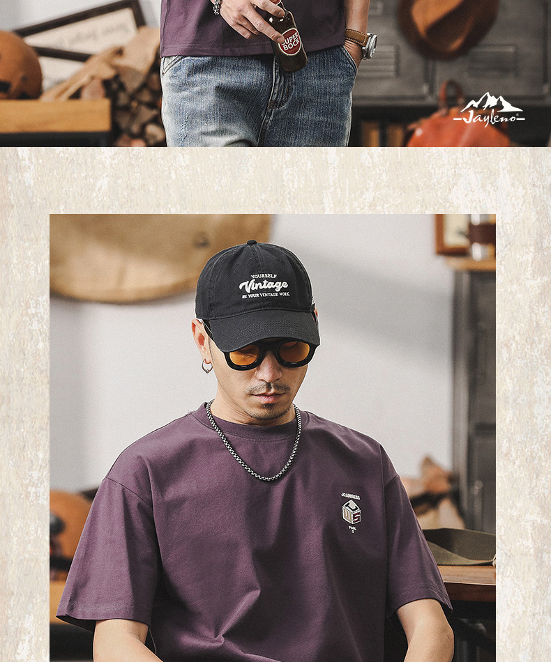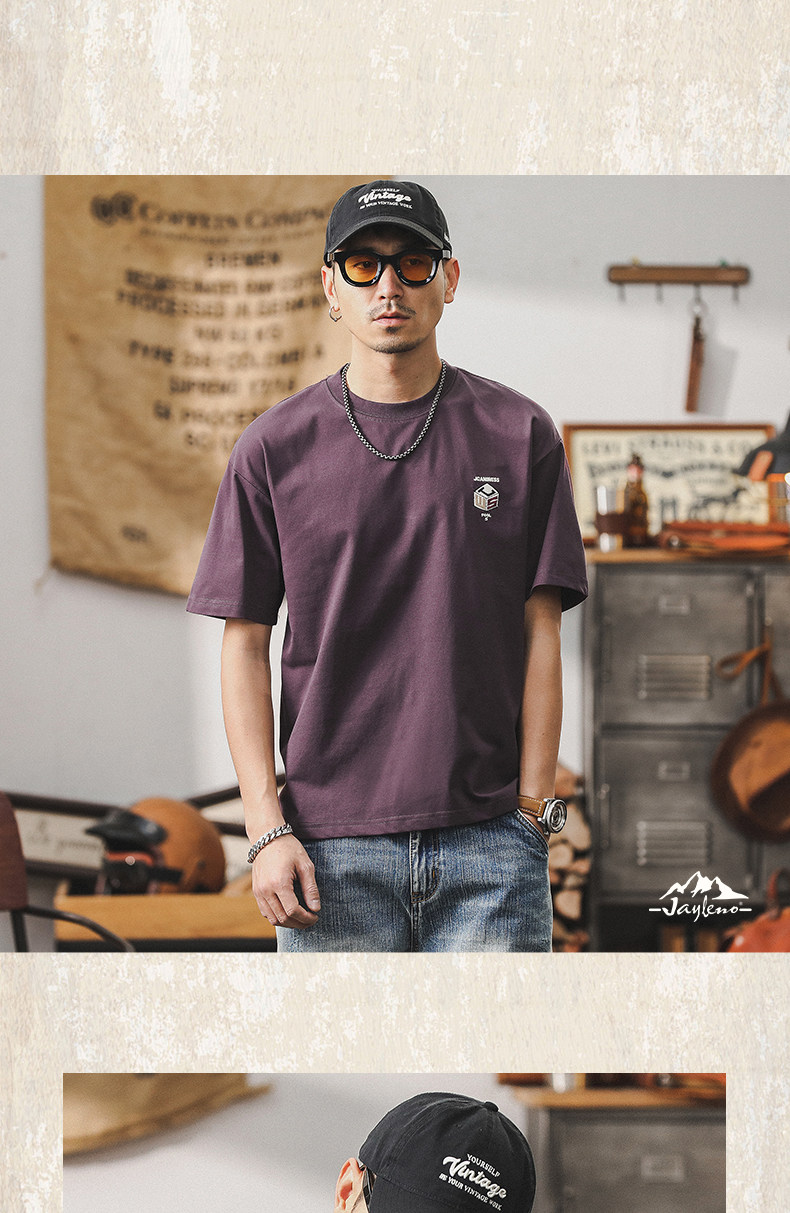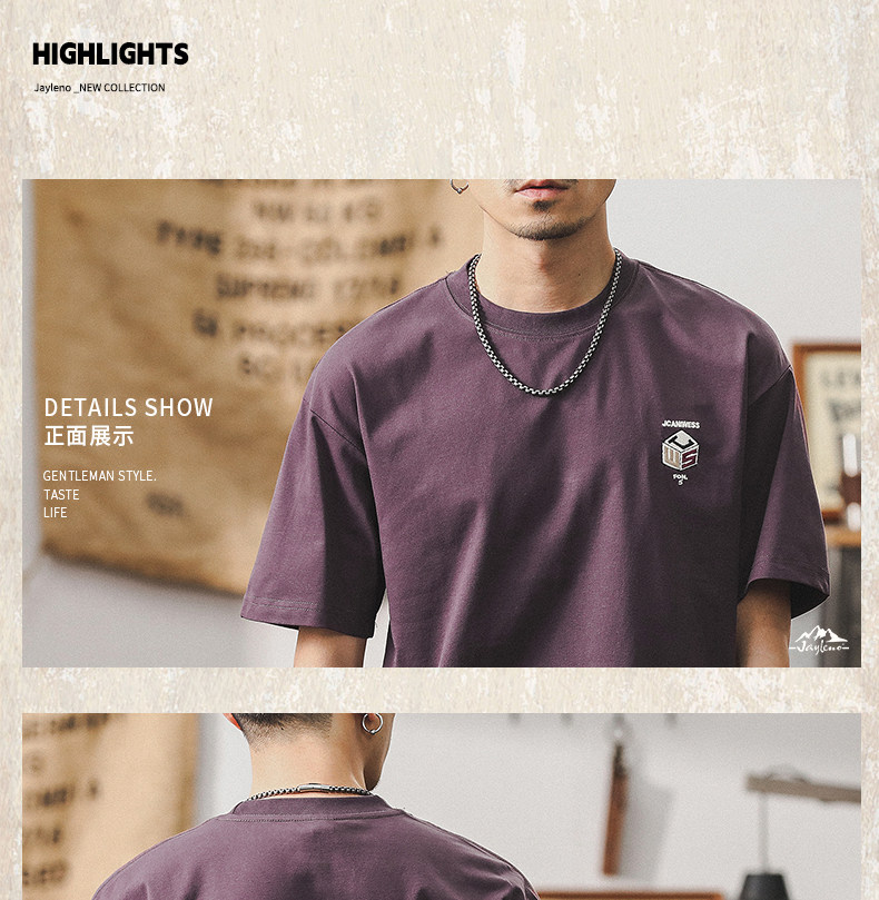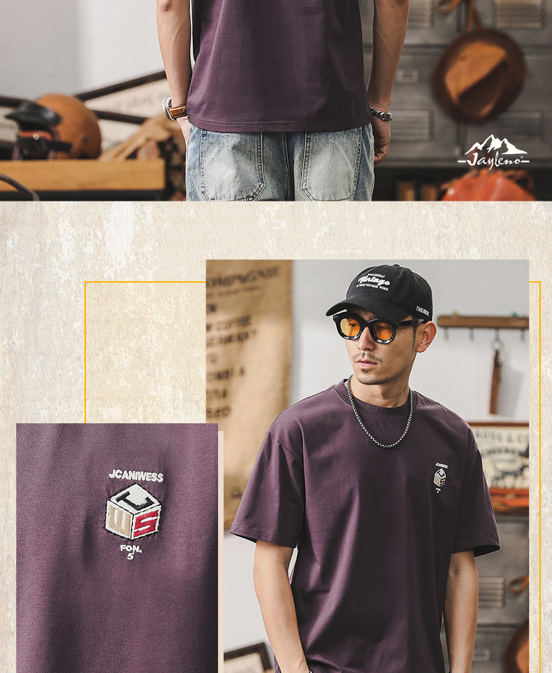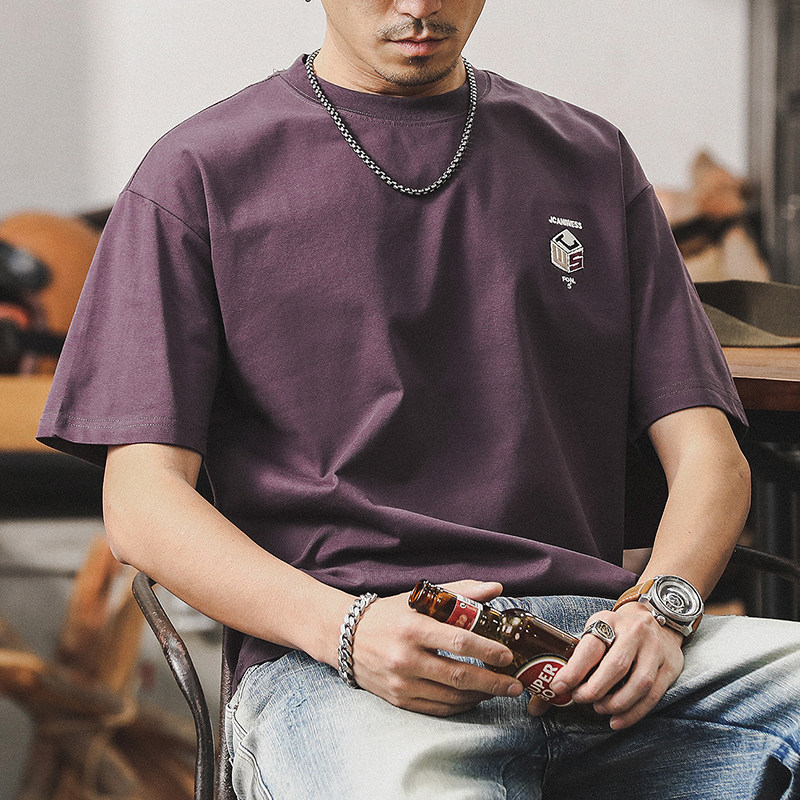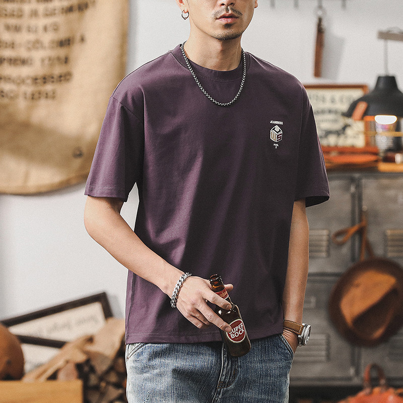 杰雷诺 Летняя ретро сиреневая футболка с коротким рукавом, в американском стиле, свободный крой