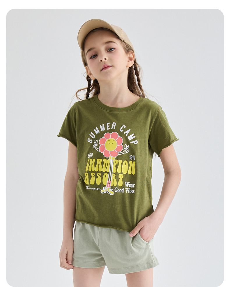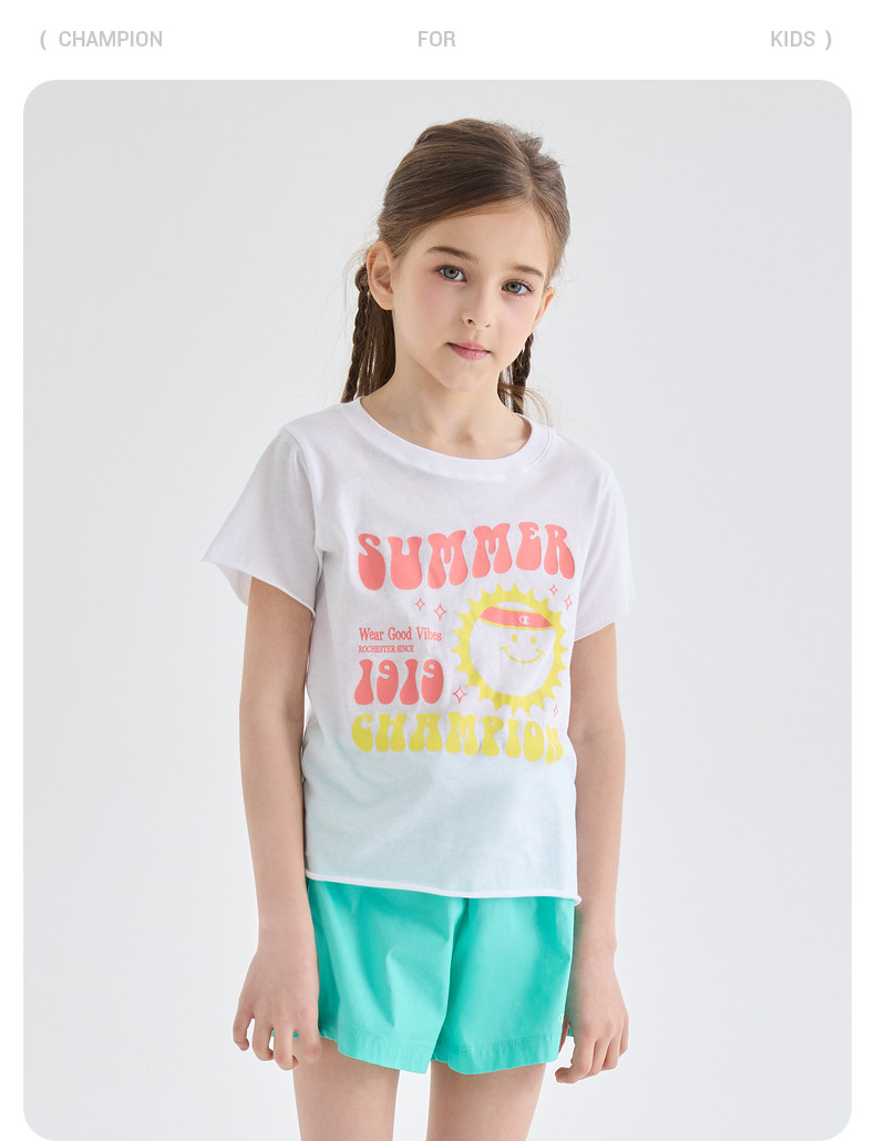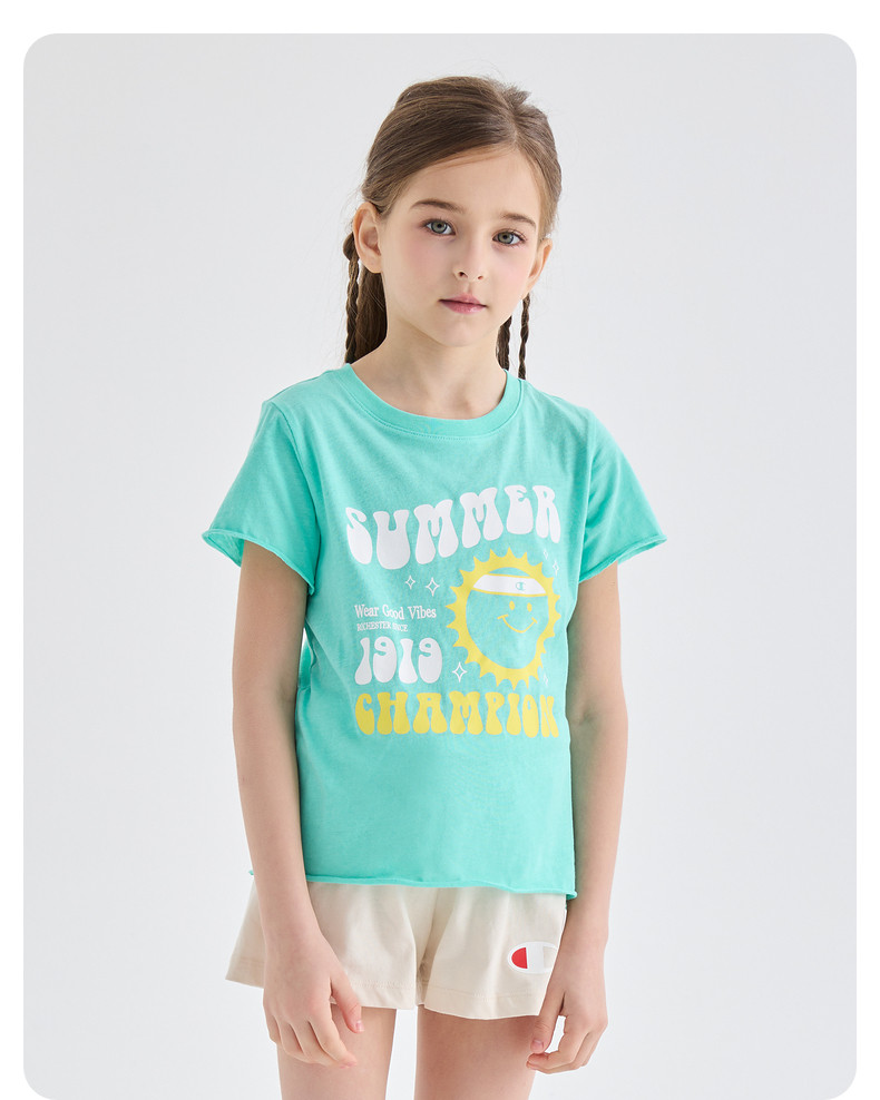 Чемпионский чемпион Детская одежда 2024 Летняя новая женщина средней школы БОЛЬШОЙ ДЕЙСТВИЯ.