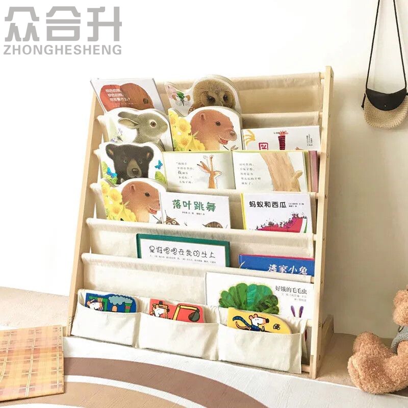 Детская книжная полка, простая система хранения для детского сада, ткань из натурального дерева, книга с картинками