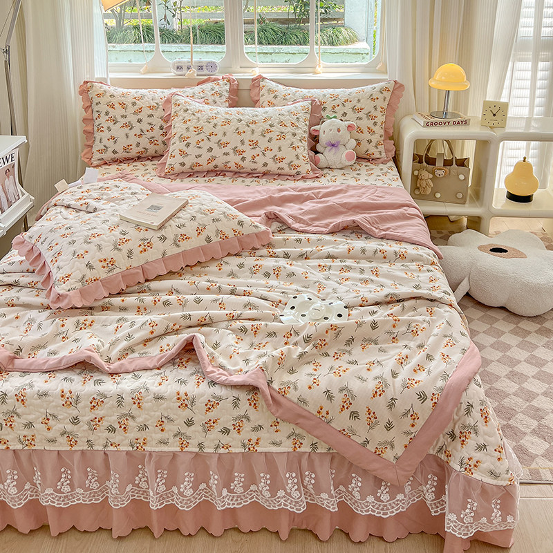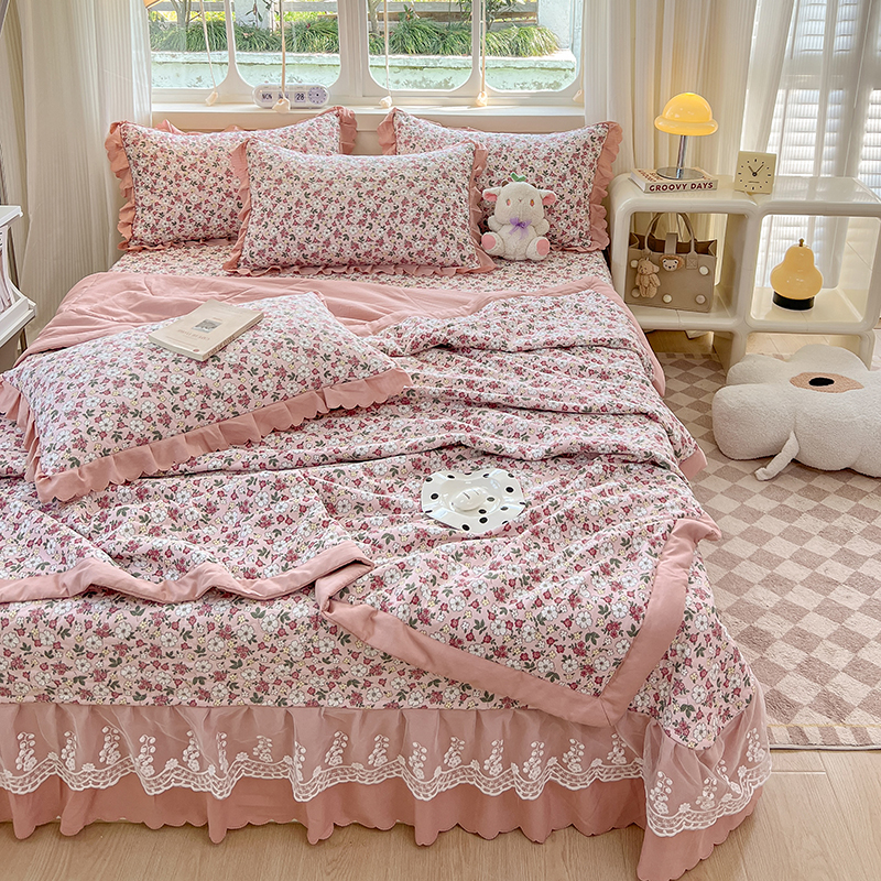 Летнее одеяло, хлопковый комплект, хлопковое прохладное одеяло, покрывало, в корейском стиле, 4 предмета