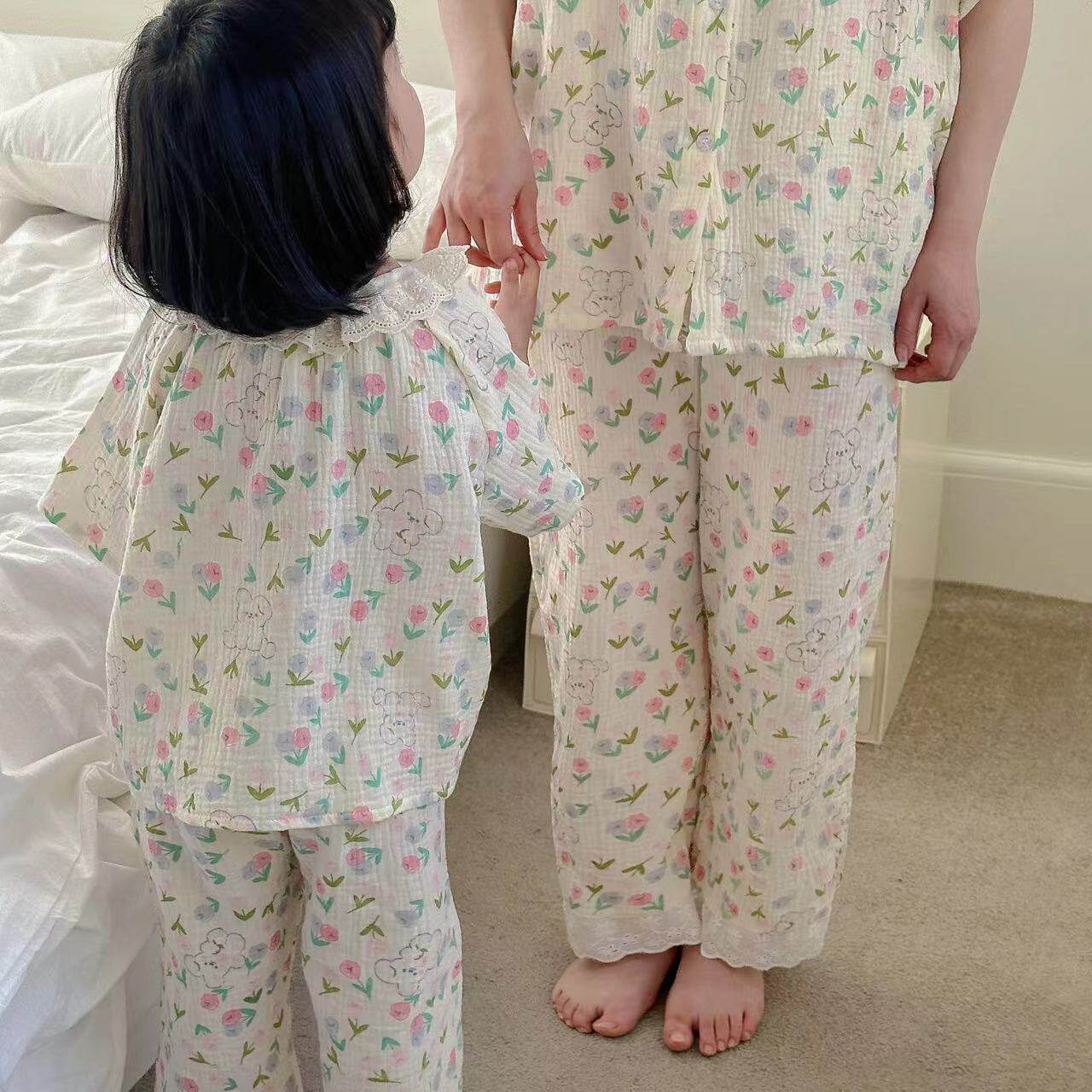 Летняя пижама, дышащий детский комплект, семейный стиль