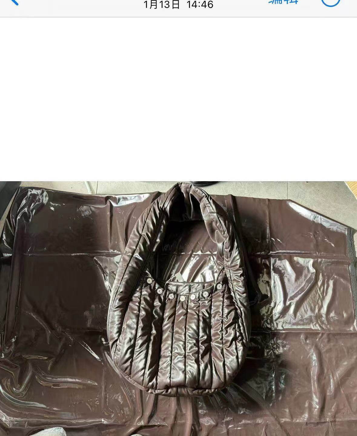 (Есть еще две проблемы. После того, как была изготовлена вторая версия, я обнаружил, что в лямках меньше хлопка. Когда я разобрал ее, я обнаружил, что она отличается от корпуса сумки. В лямках было два слоя хлопка.) Большие изделия будут модифицированы, чтобы обеспечить единообразие.