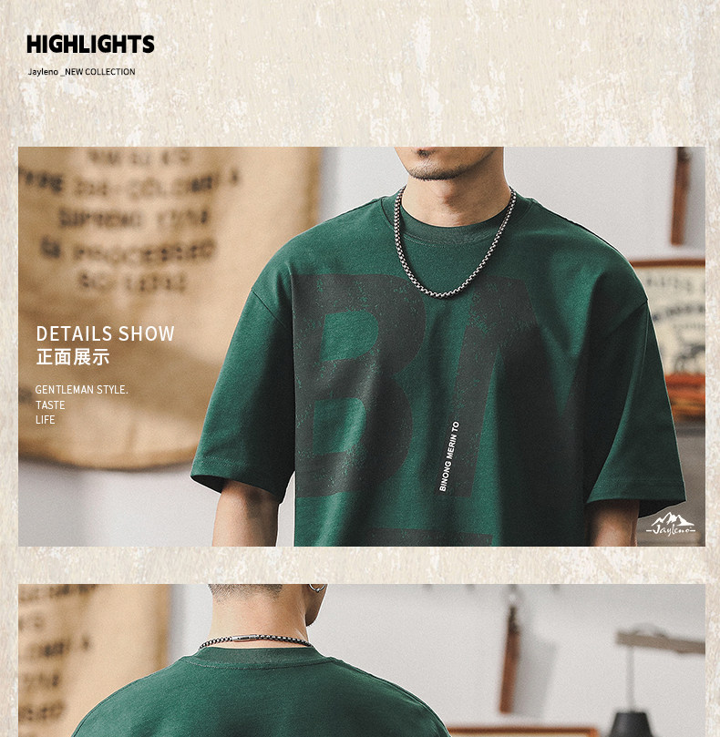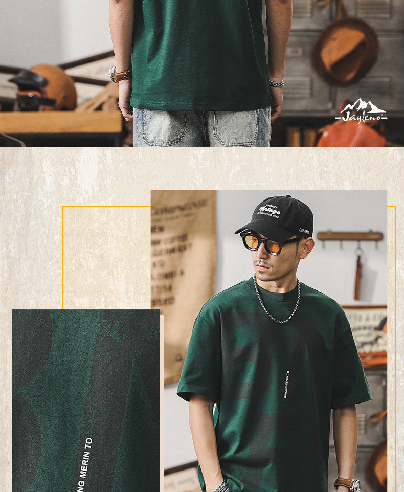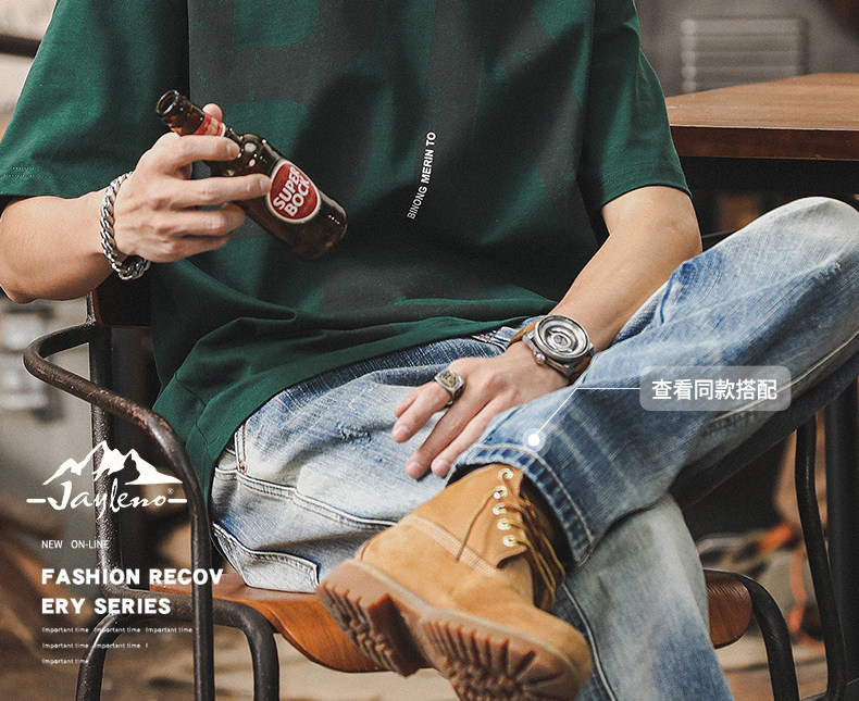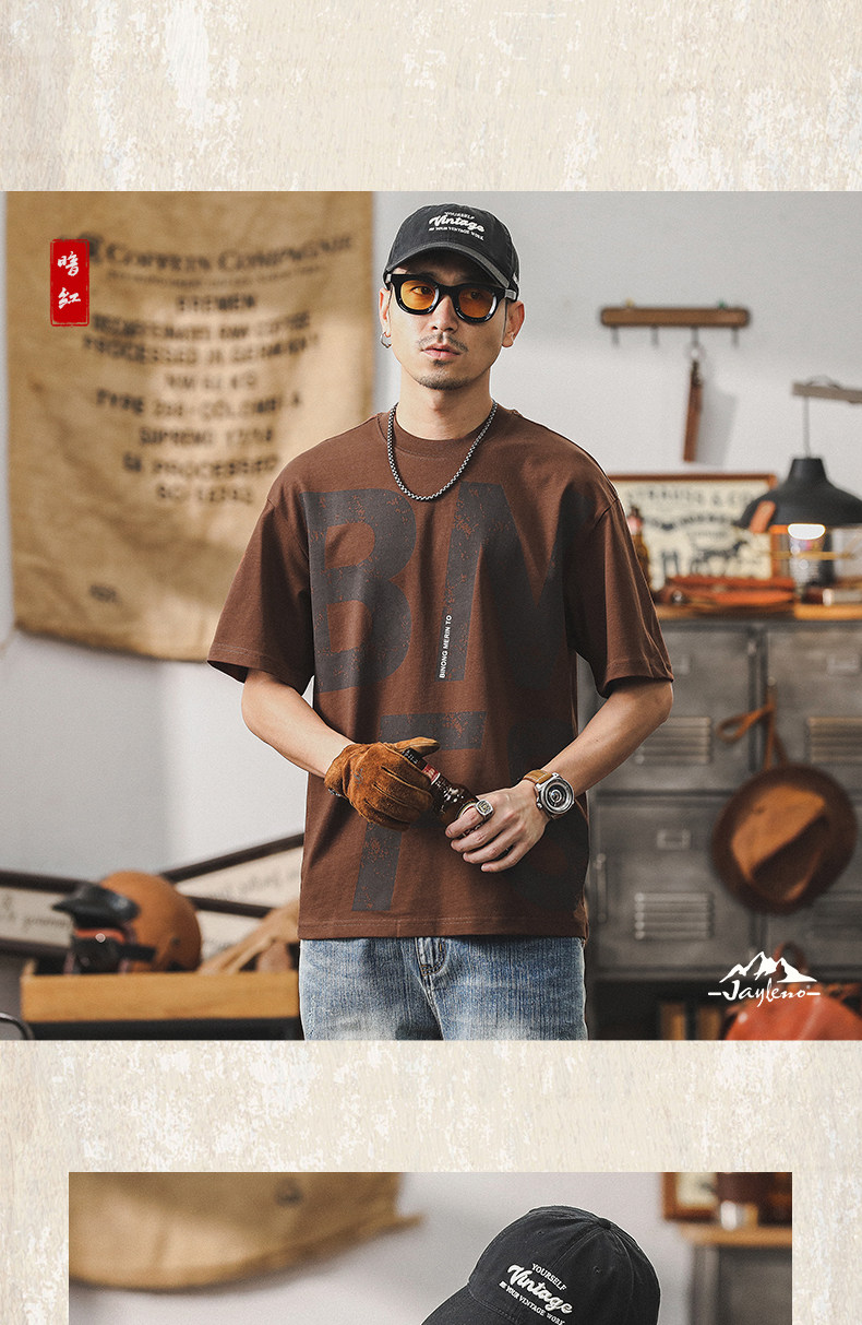 杰雷诺 Ретро хлопковая летняя футболка с коротким рукавом, в американском стиле, оверсайз