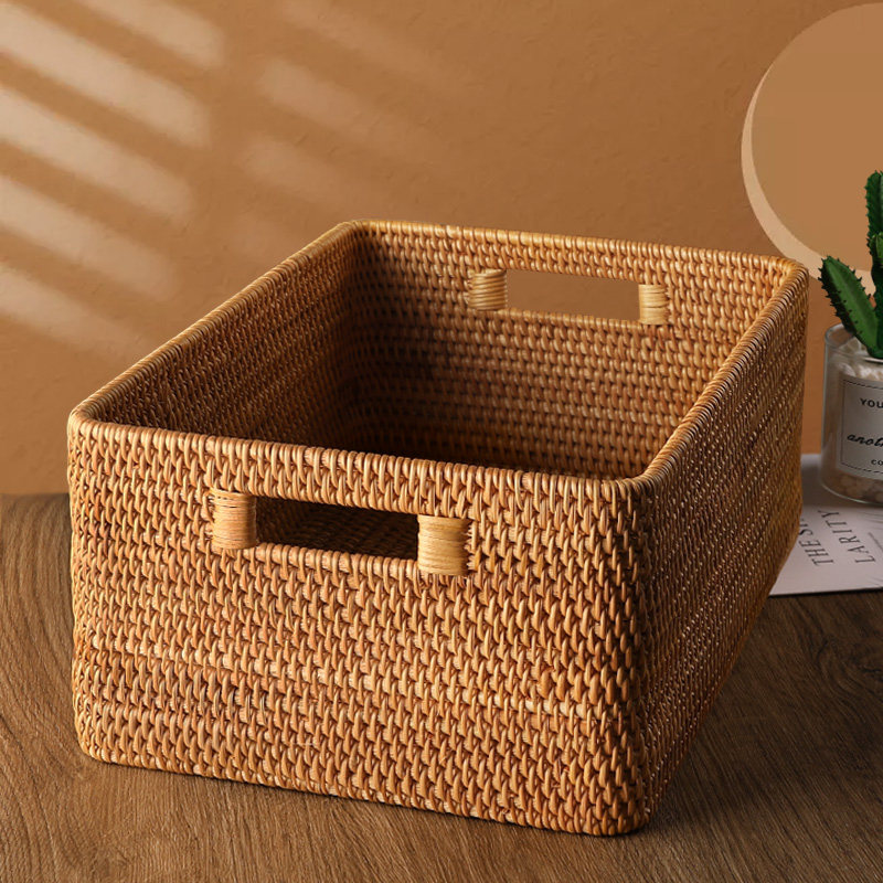 Прямоугольная корзина для хранения, соломенная настольная плетеная корзина для белья