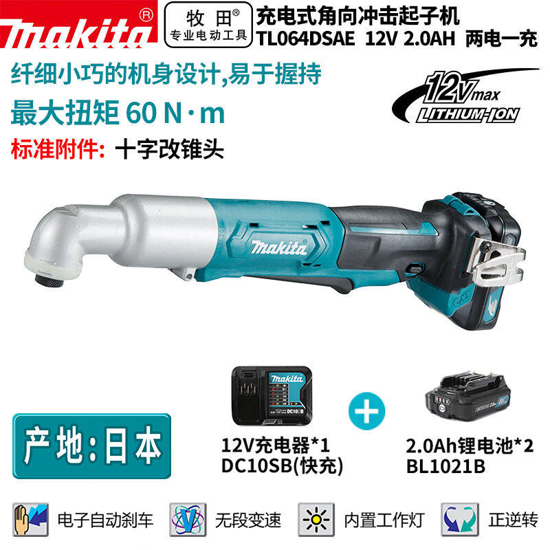 MAKITATL064DSAE Литийный угол аккумулятора, чтобы воздействовать на суб -макин 12V2,0AH Двухсторонняя зарядка