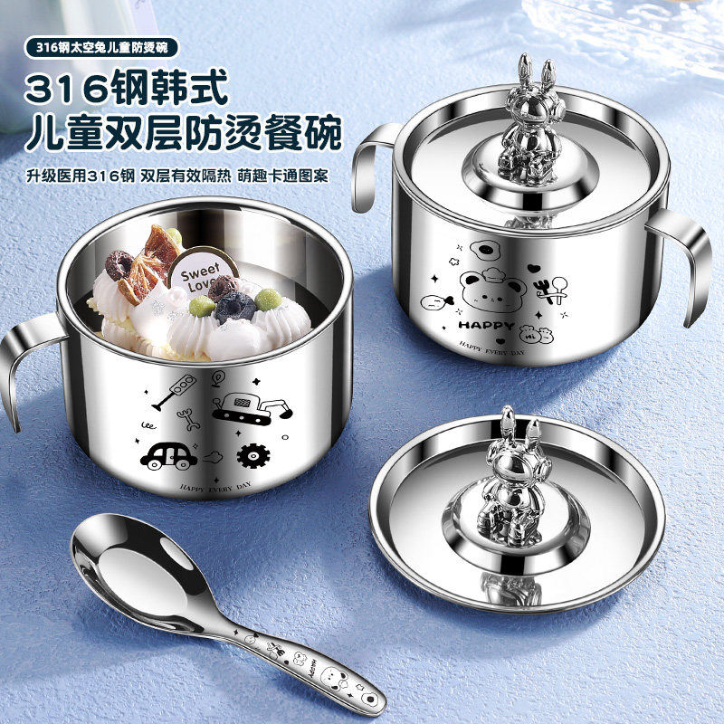 Детская двухэтажная супница из нержавеющей стали для школьников для детского сада для еды, защита от ожогов, защита при падении