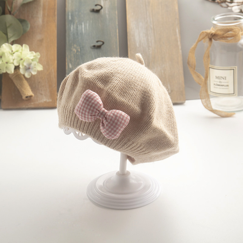 Детский берет с капюшоном с бантиком, детская шерстяная милая шапка подходит для мужчин и женщин