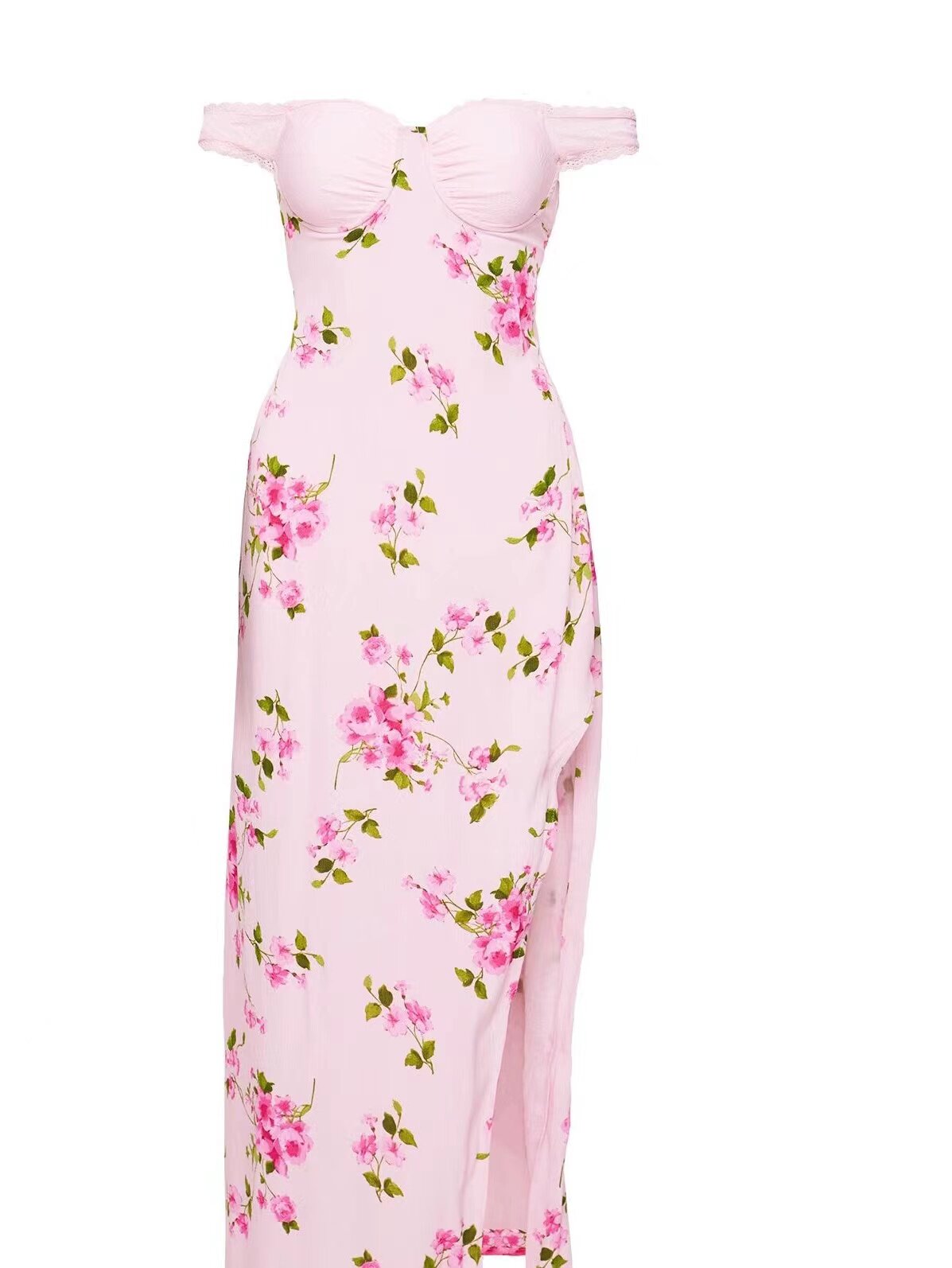 Розовое сексуальное мягкое боди, длинная юбка, европейский стиль, открытые плечи