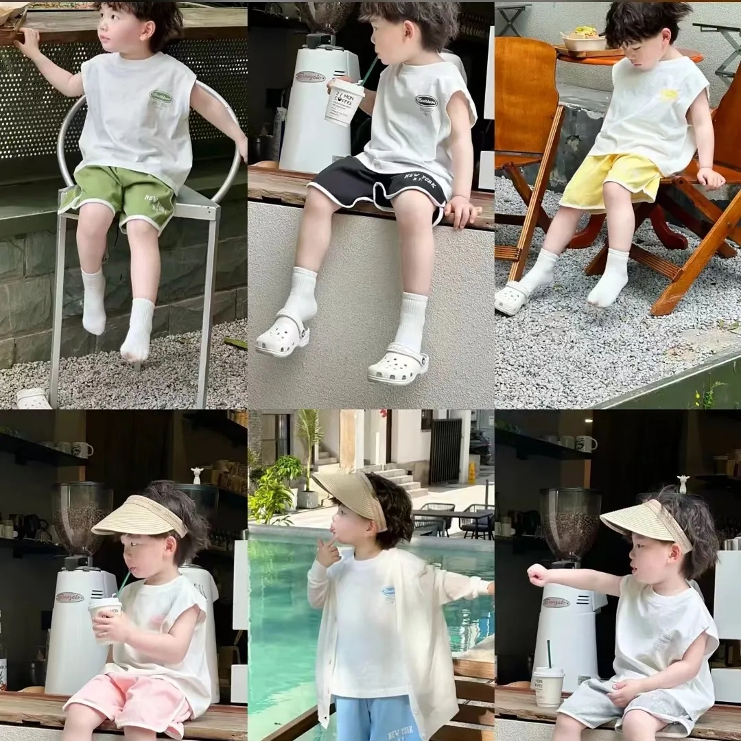 Детская майка для отдыха, шорты, комплект для мальчиков, спортивный костюм, популярно в интернете, в западном стиле