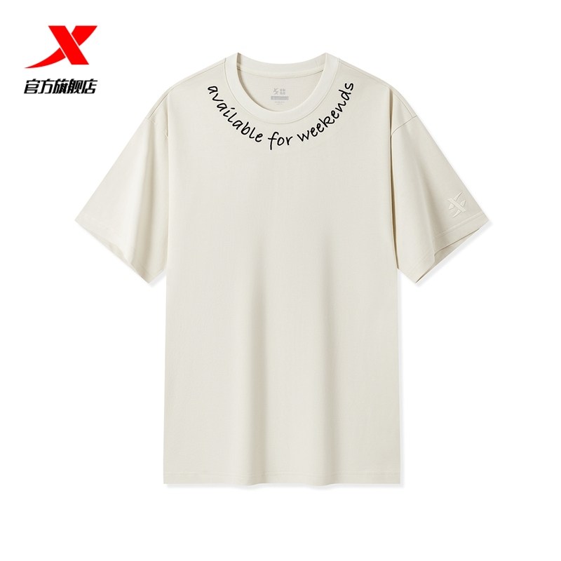 Xtep, летняя спортивная футболка с коротким рукавом подходит для мужчин и женщин для влюбленных, короткий рукав, круглый воротник, для бега