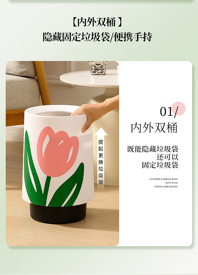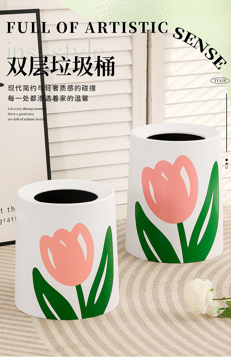 Ins tulip мусорная корзина спальня гостиная большой мусор может двойной слой творческой бумажной корзины общежитие. Хорошая гигиена материала.