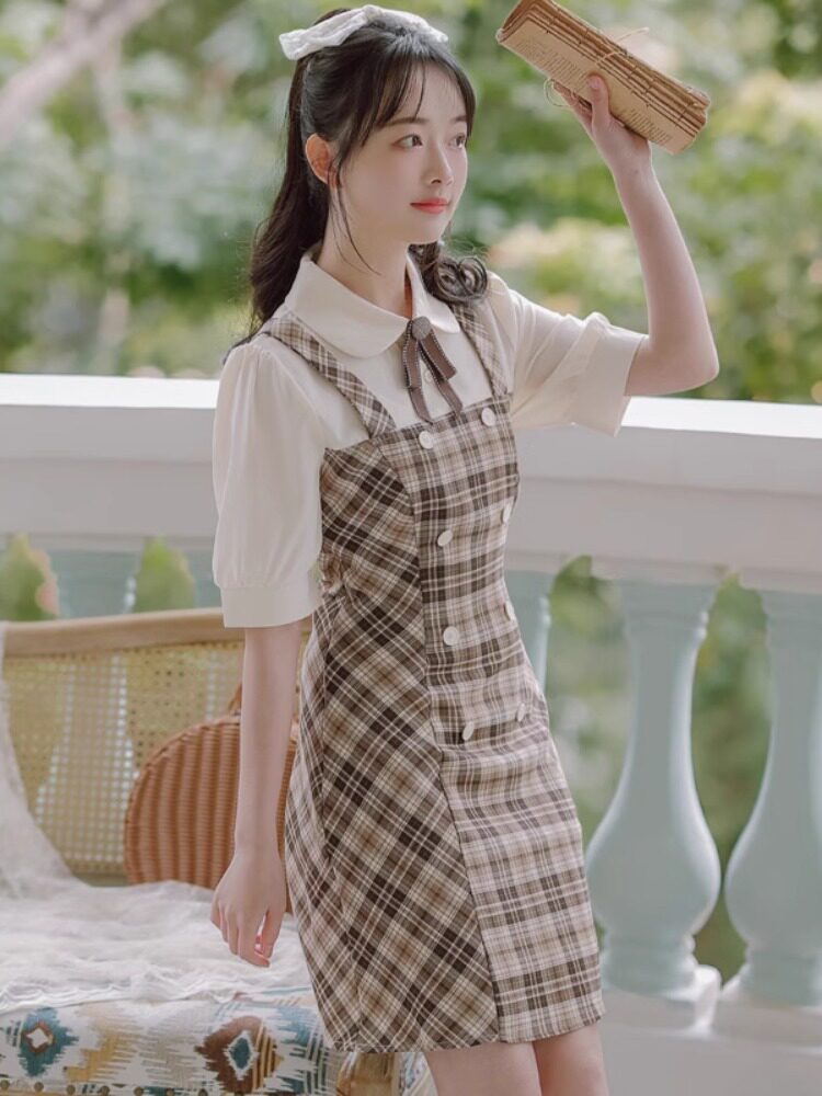 Комплект, летняя юбка, платье, галстук-бабочка, французский стиль, подходит для подростков