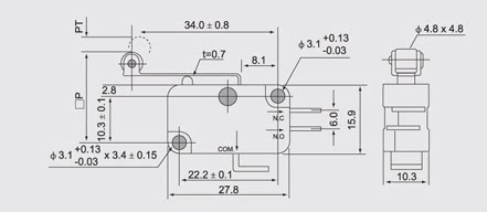 Микро-двигатель микропрокат-переключатель V-156-1C25 OV-156-1C25 3-футовой полоса ручки полоса