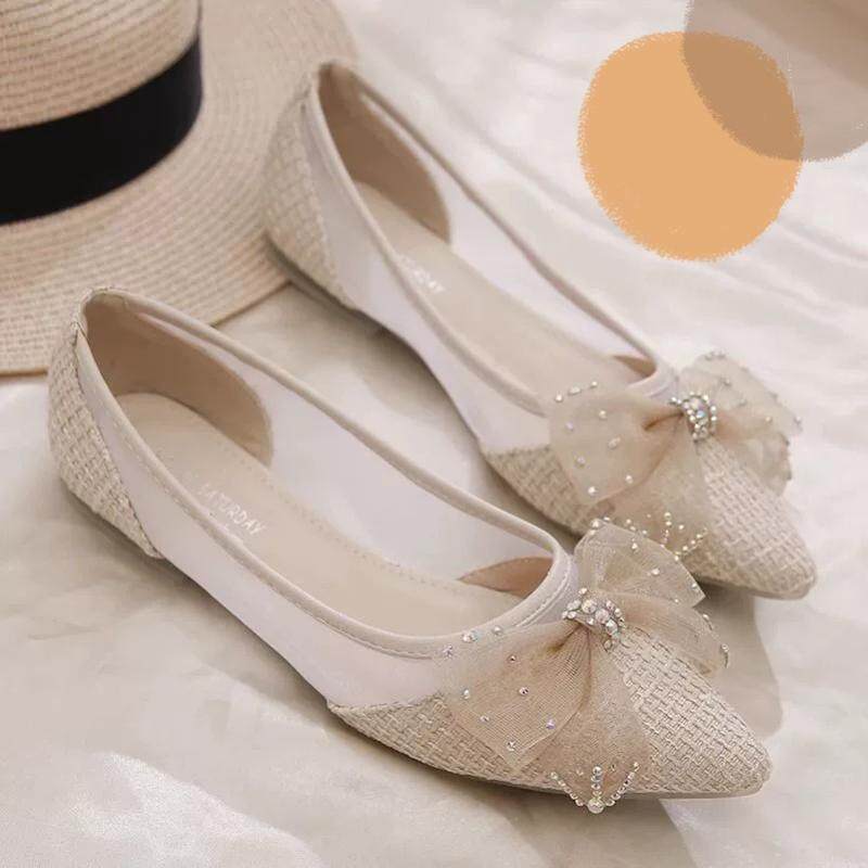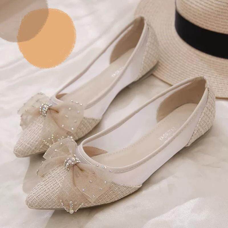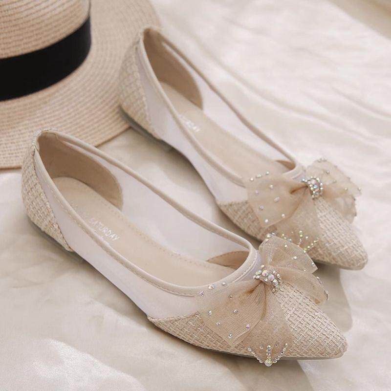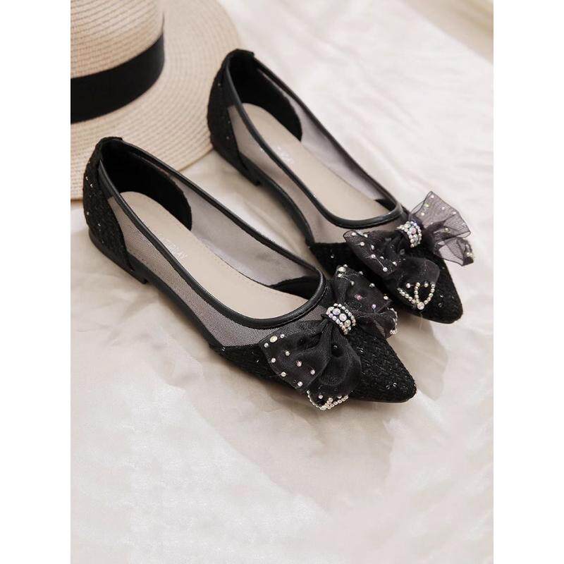 Новые летние удобные туфли на плоской подошве в корейском стиле с бантом и сеткой, повседневные модные женские вечерние туфли-шапочки