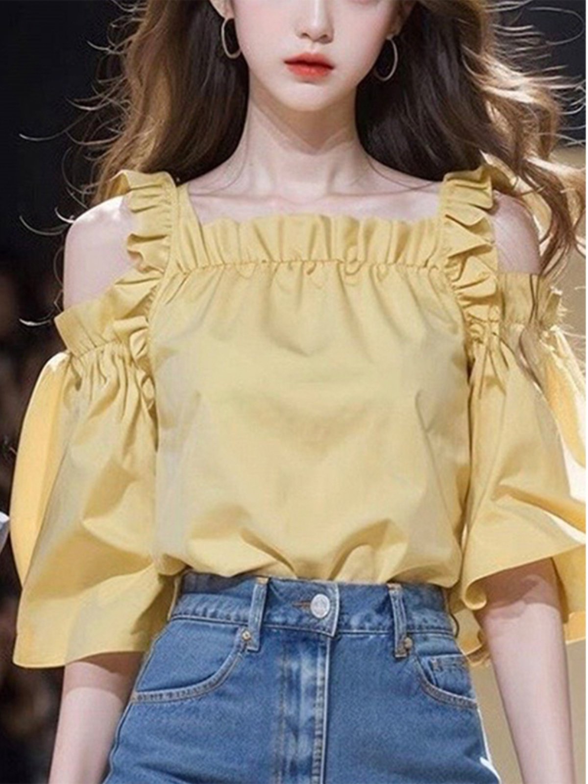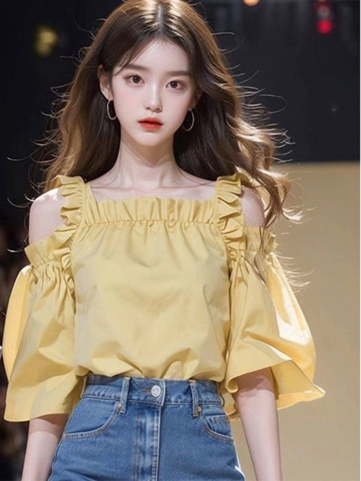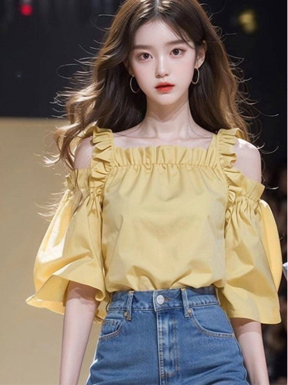 Летняя желтая рубашка, французский стиль, яркий броский стиль, по фигуре, короткий рукав