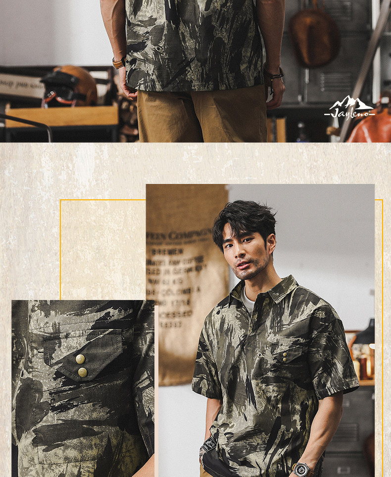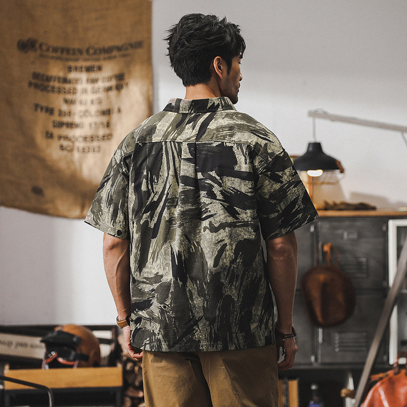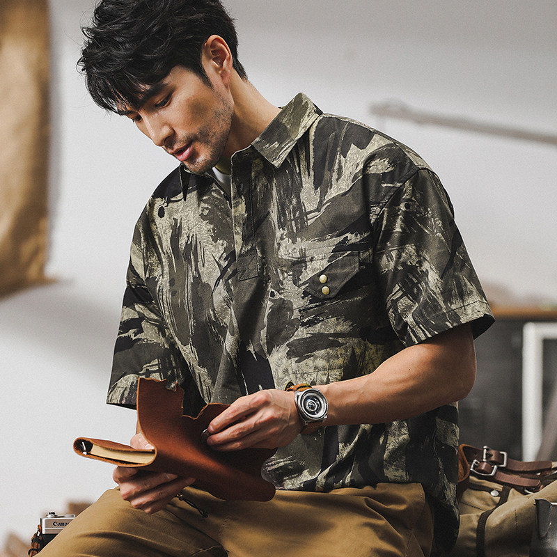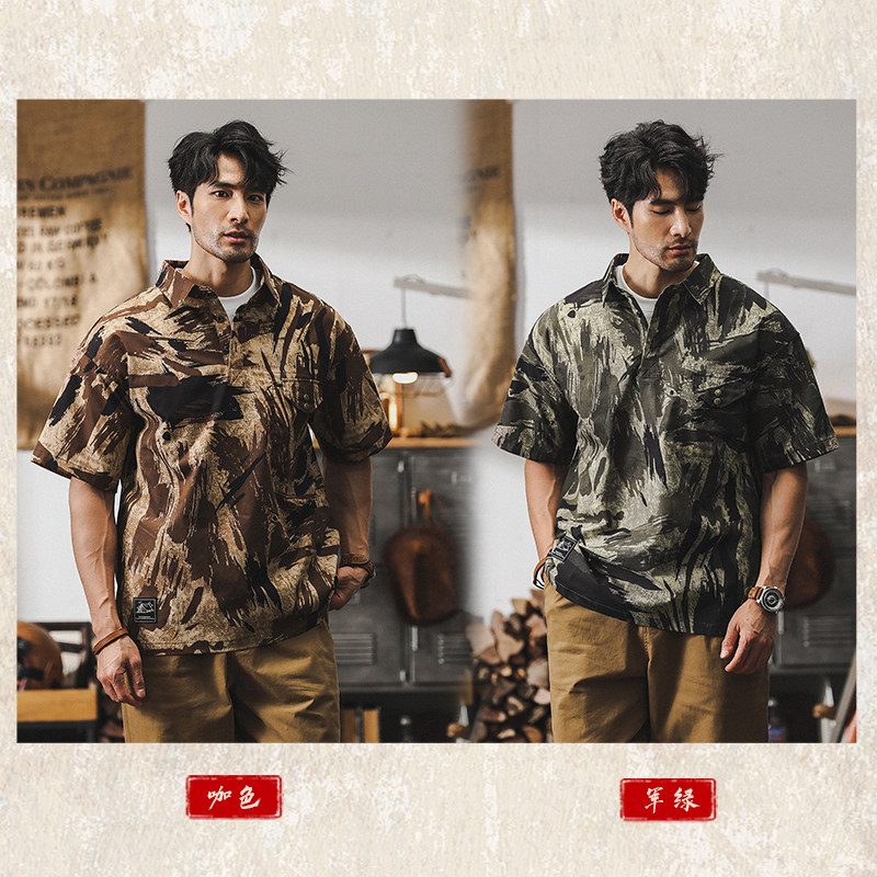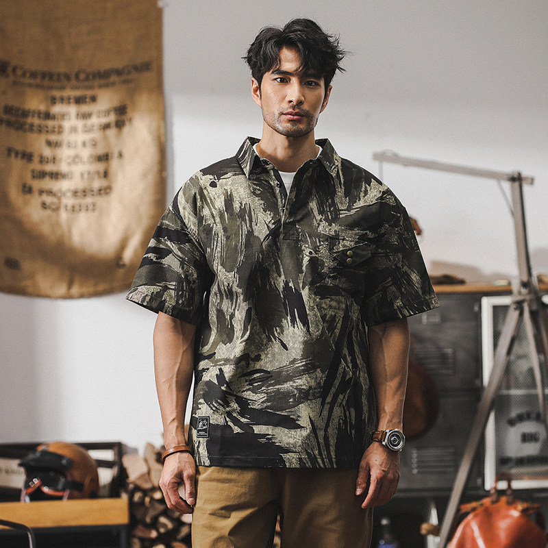 Ретро летняя тонкая камуфляжная рубашка, дорожная футболка polo для отдыха, в американском стиле, оверсайз