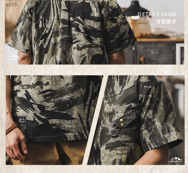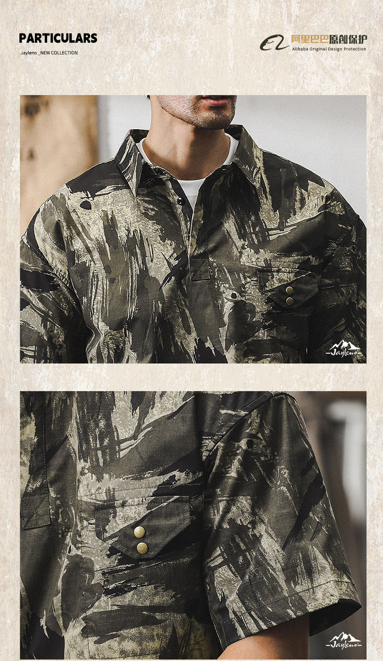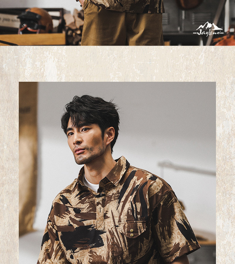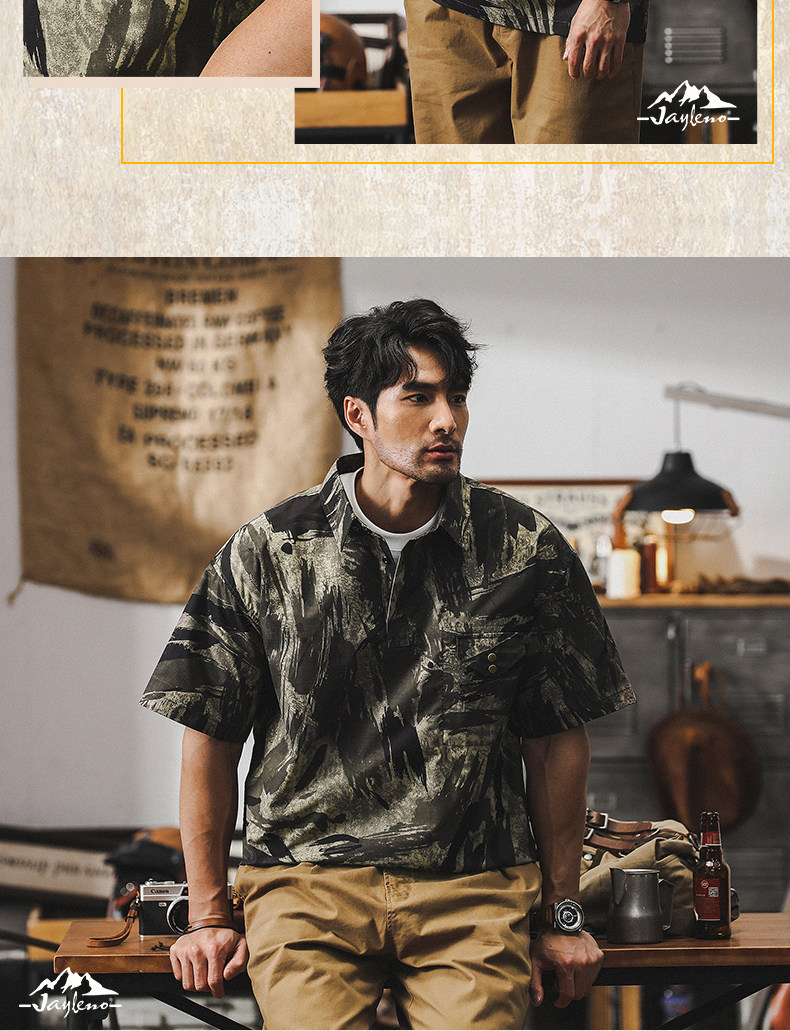 Ретро летняя тонкая камуфляжная рубашка, дорожная футболка polo для отдыха, в американском стиле, оверсайз