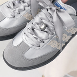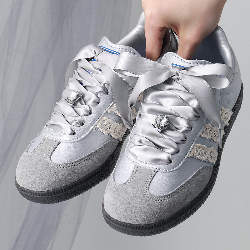 Dexun шнурки для обуви «сделай сам», балетные парусиновые кроссовки с расширенной лентой, атласный шифон, шелк, белый, серый, серебристый, женская модель