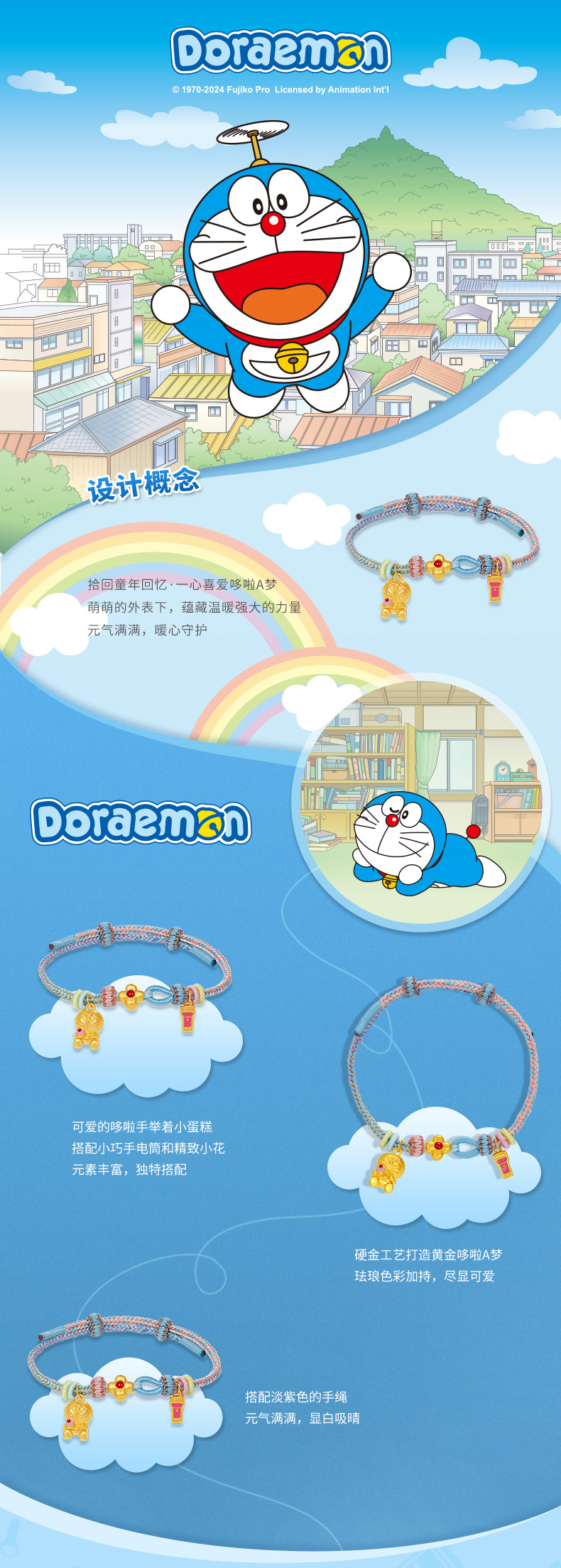 Acer, золотой браслет, цепочка, десертный милый фонарь, Дораэмон, 3D