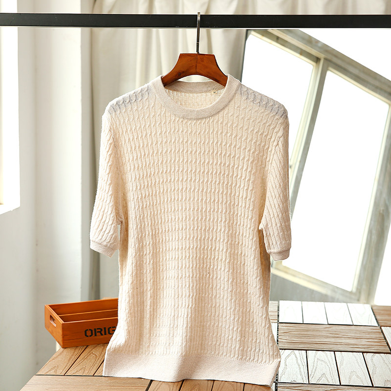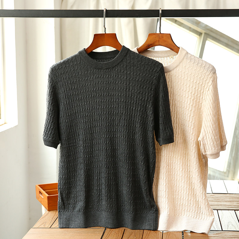 Кашемировая летняя ретро трикотажная футболка с коротким рукавом с круглым воротником, Италия