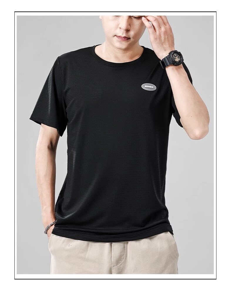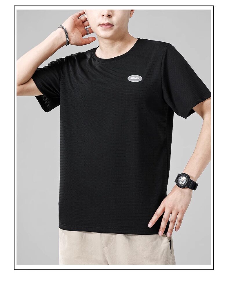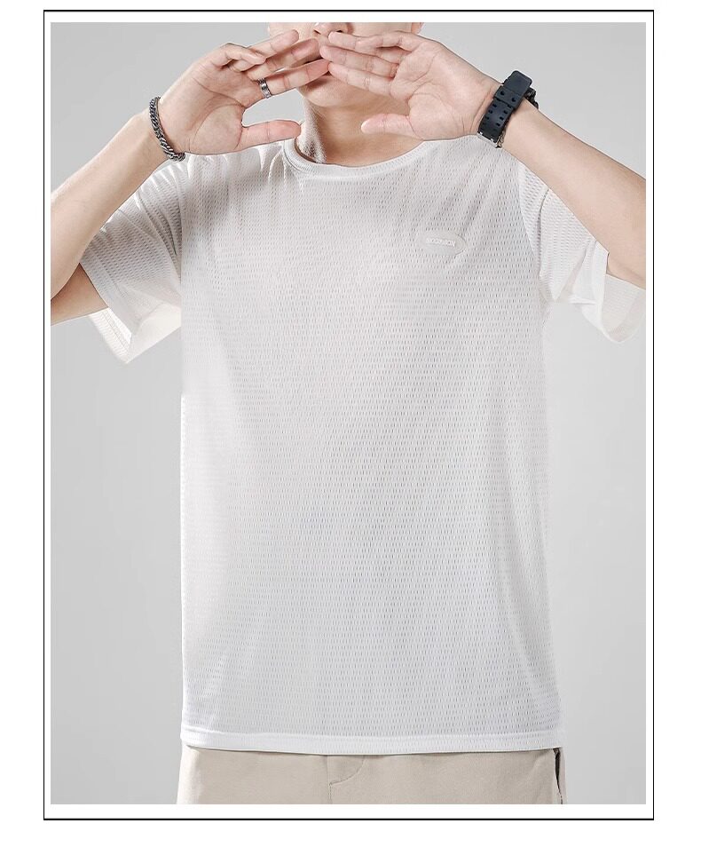 Шелковая быстросохнущая тонкая футболка с коротким рукавом с круглым воротником для отдыха, оверсайз